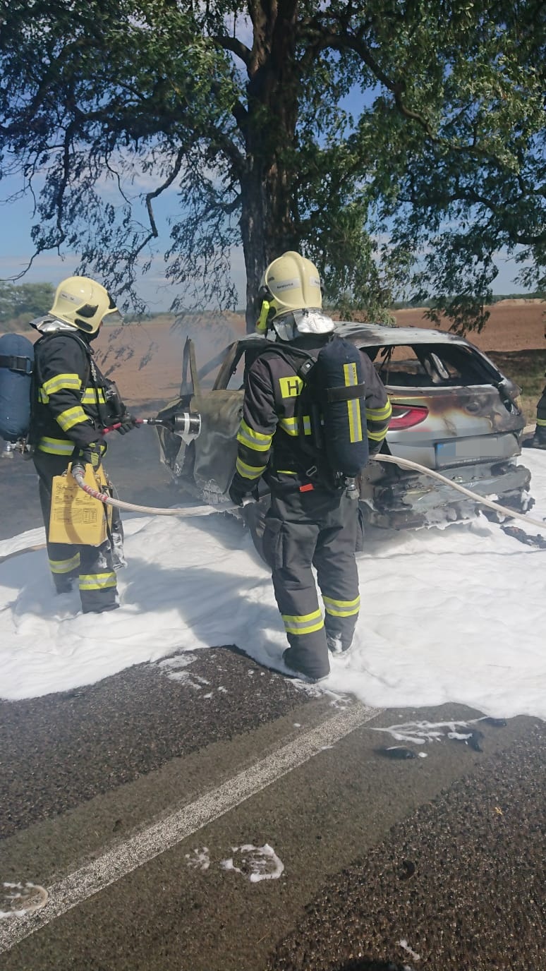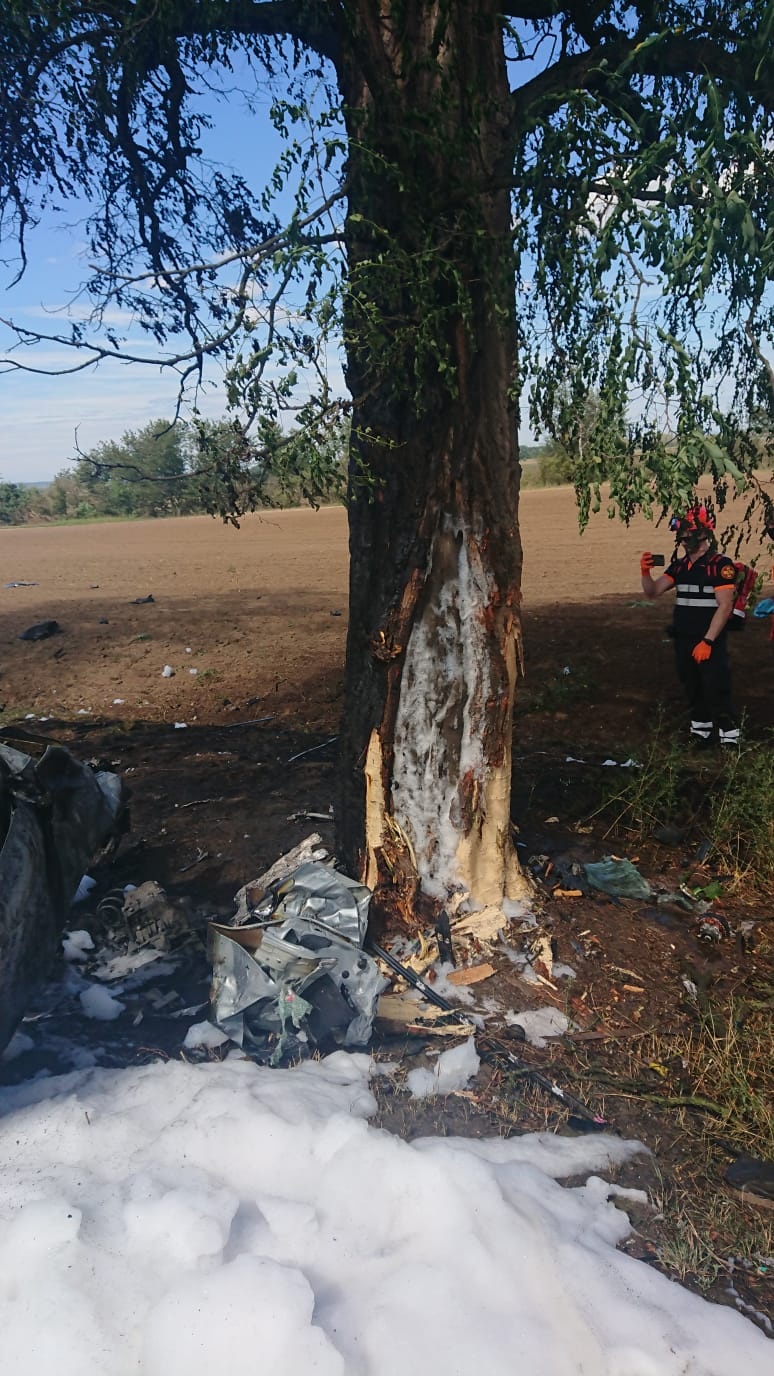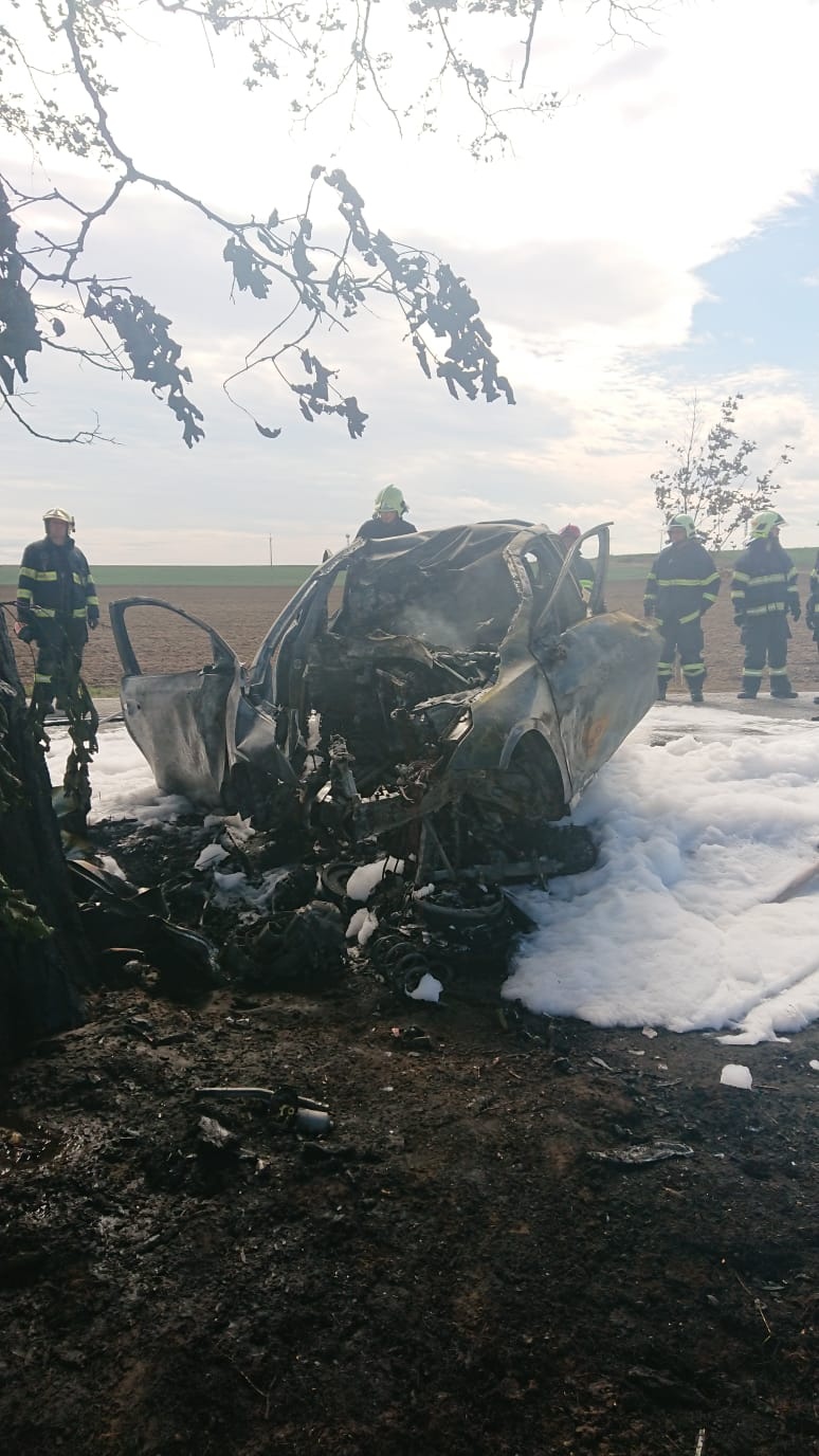 Už první volající uvedl, že osobní automobil po nárazu do stromu začal okamžitě hořet, proto operační důstojník k události vyslal profesionální jednotku z Neratovic spolu s velitelem čety z Mělníka, podnikovou jednotku Aero Vodochody a dobrovolnou jednotku obce Chlumín.