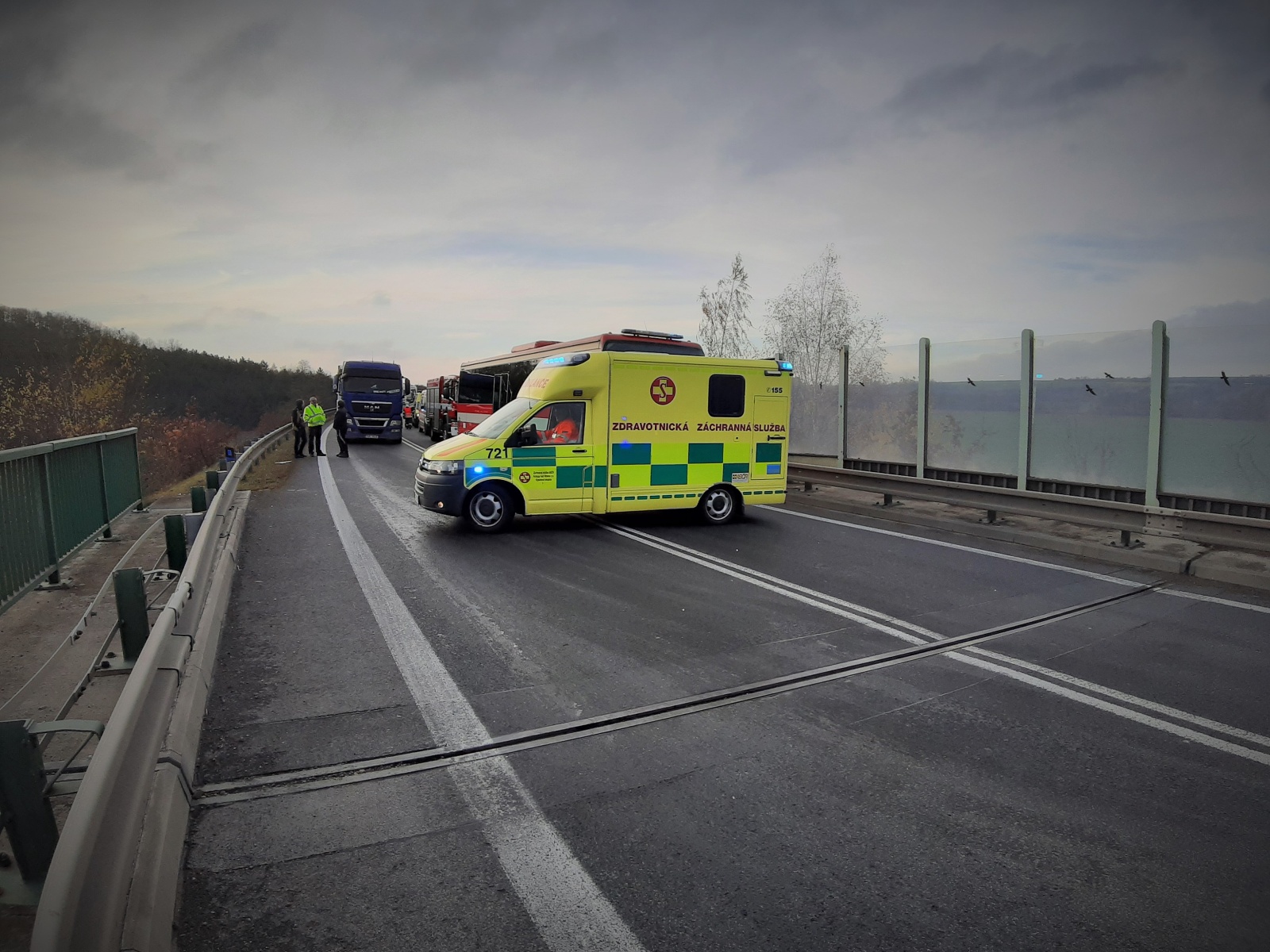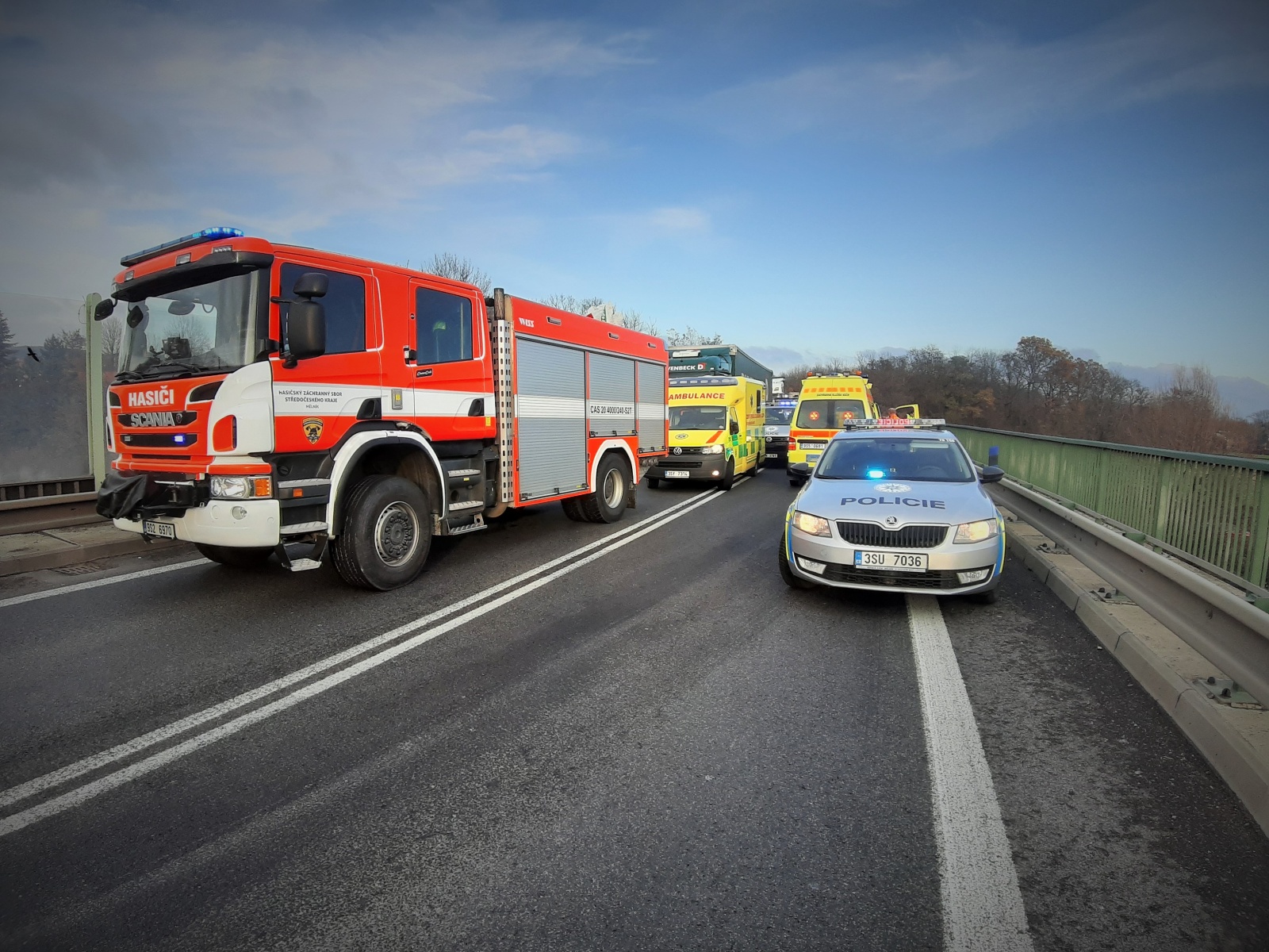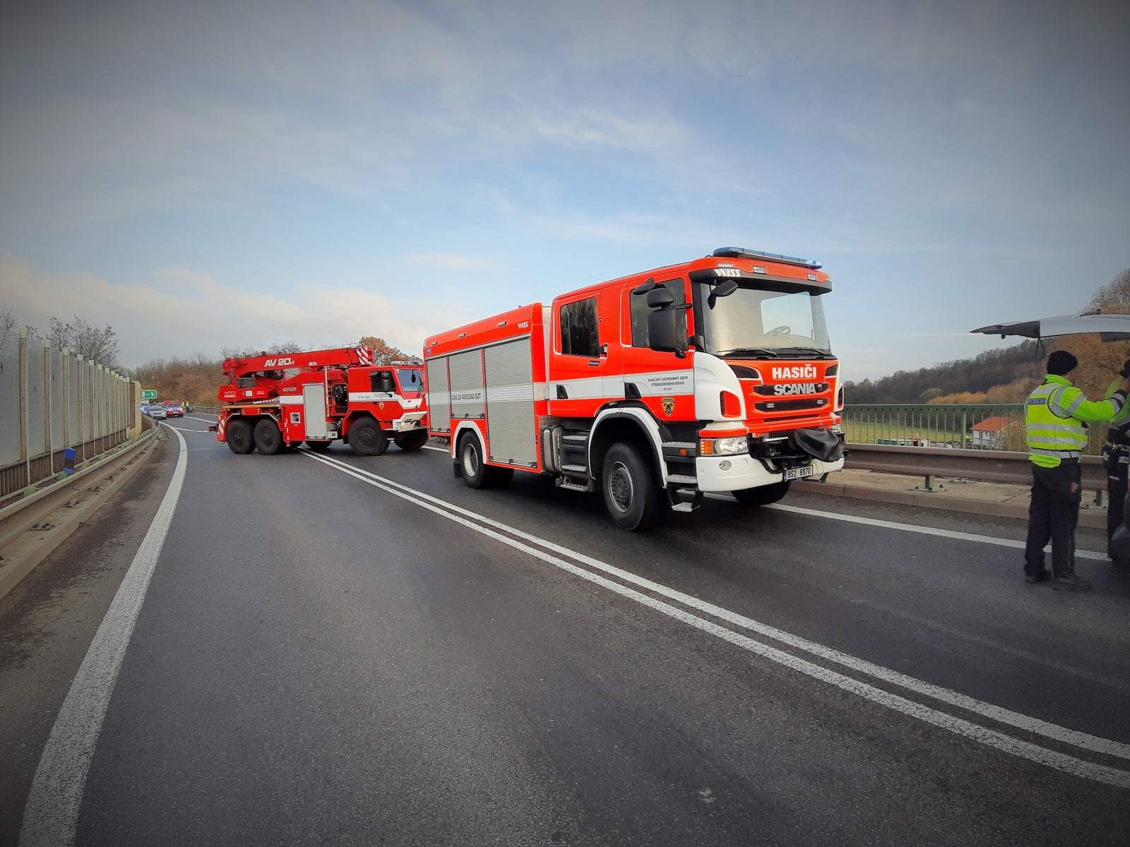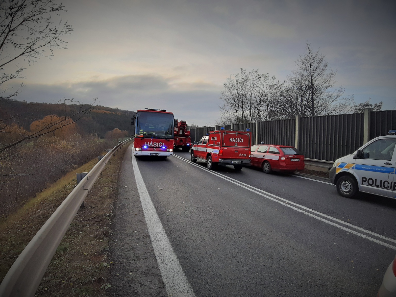Ve čtvrtek 14. listopadu několik minut po půl druhé odpoledne přijala tísňová linka HZS Středočeského kraje informaci o vážné dopravní nehodě, při které na silnici číslo 16 ze Slaného do Mělníka kousek před dálnicí D8 v místě přemostění staré teplické silnice u Nové Vsi narazil autobus do nákladního vozidla.