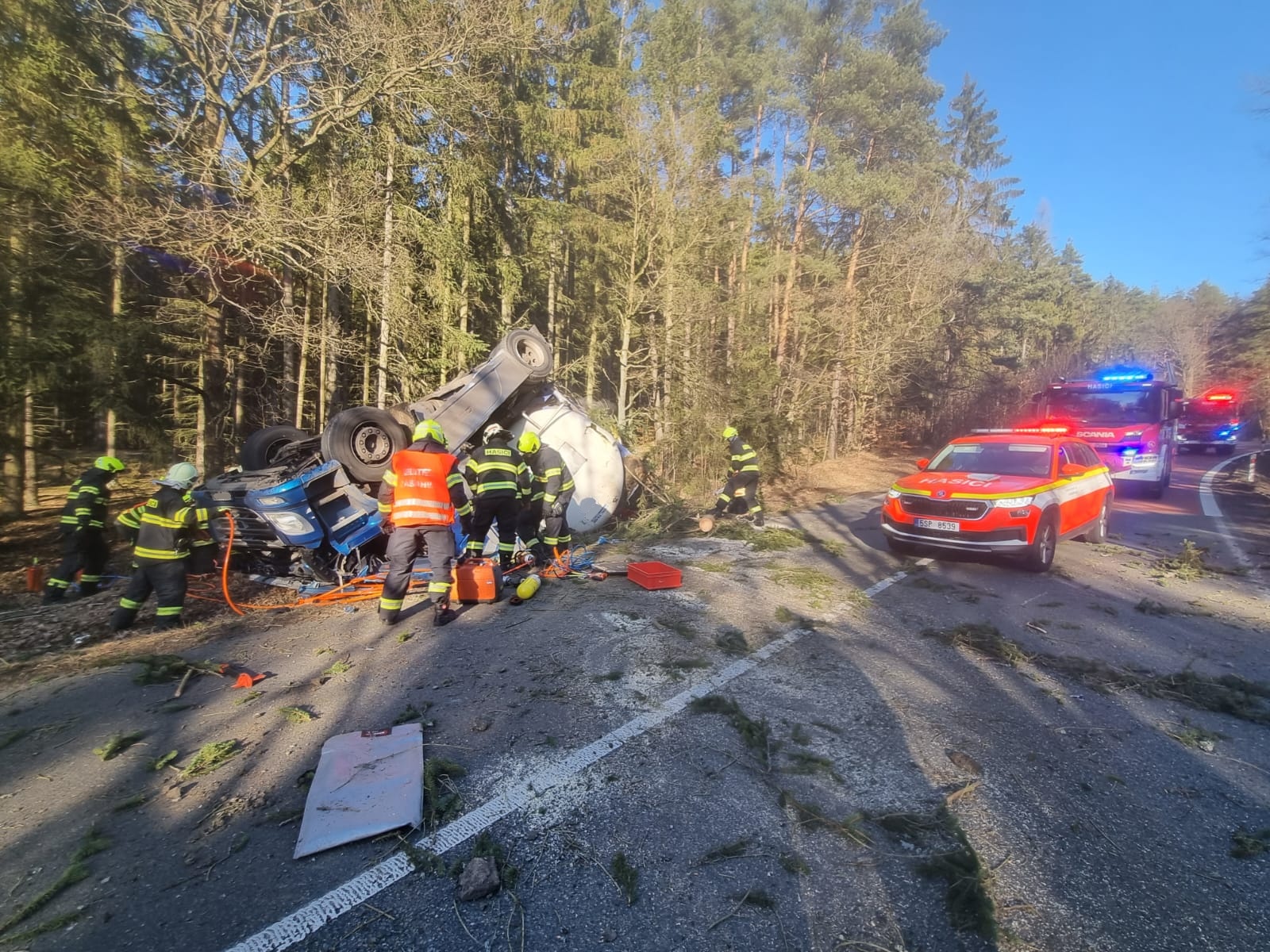 Ve středu 10. ledna dvanáct minut po třinácté hodině přijalo Krajské operační a informační středisko středočeských hasičů tísňovou informaci o dopravní nehodě nákladního vozidla, které se převrátilo koly vzhůru, uvnitř kabiny zůstal zřejmě zaklíněný řidič.