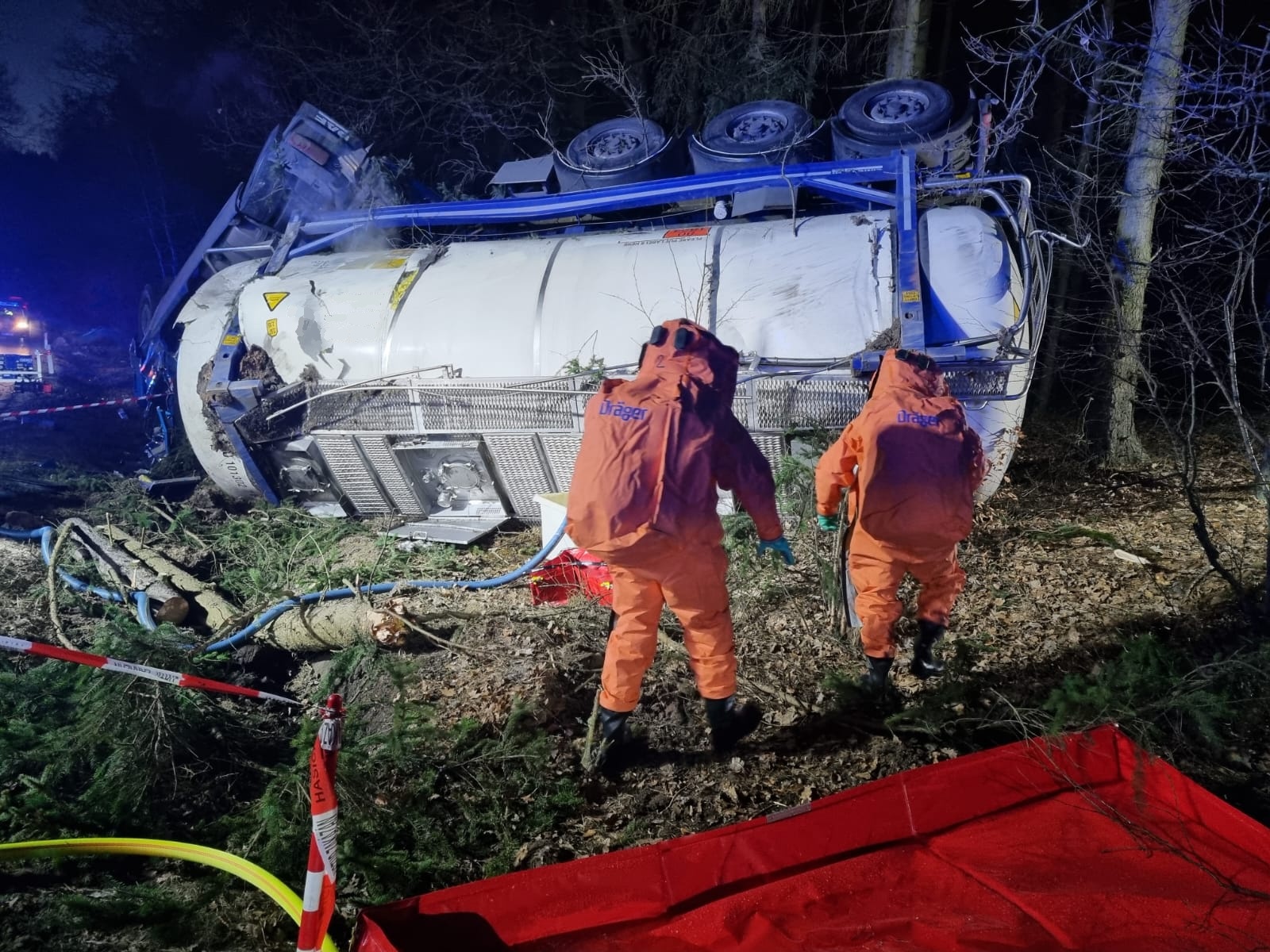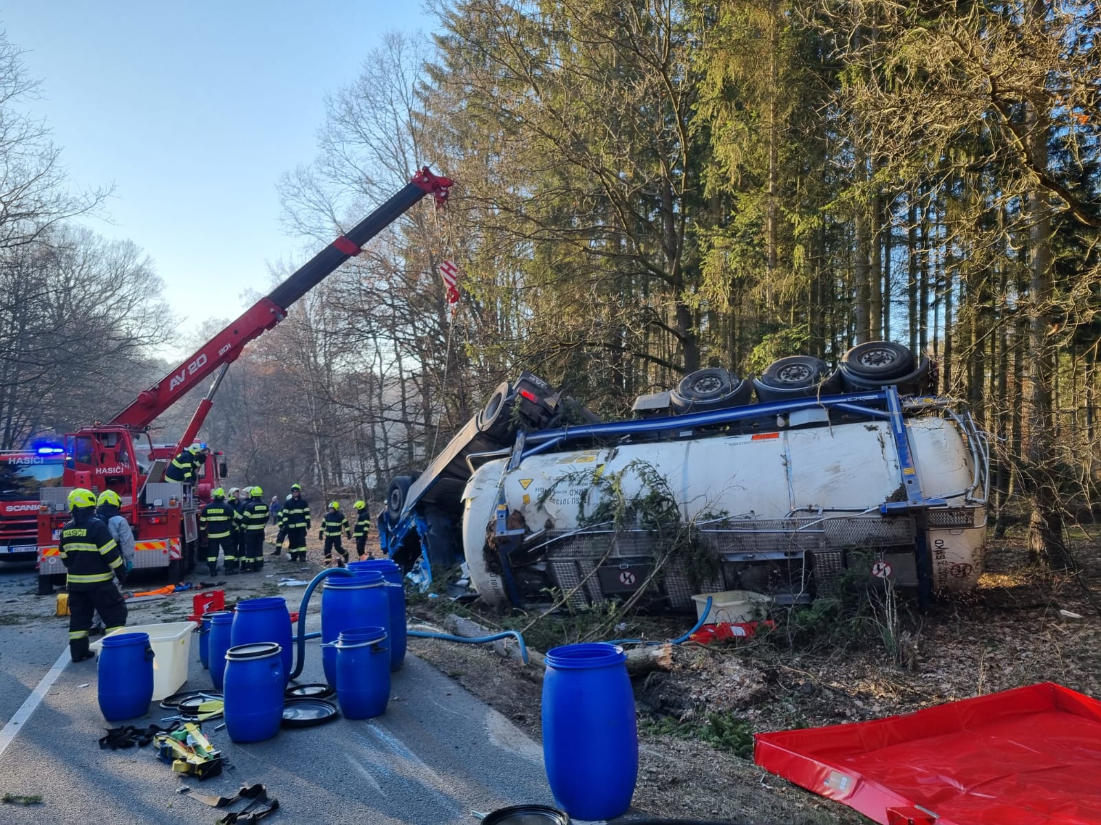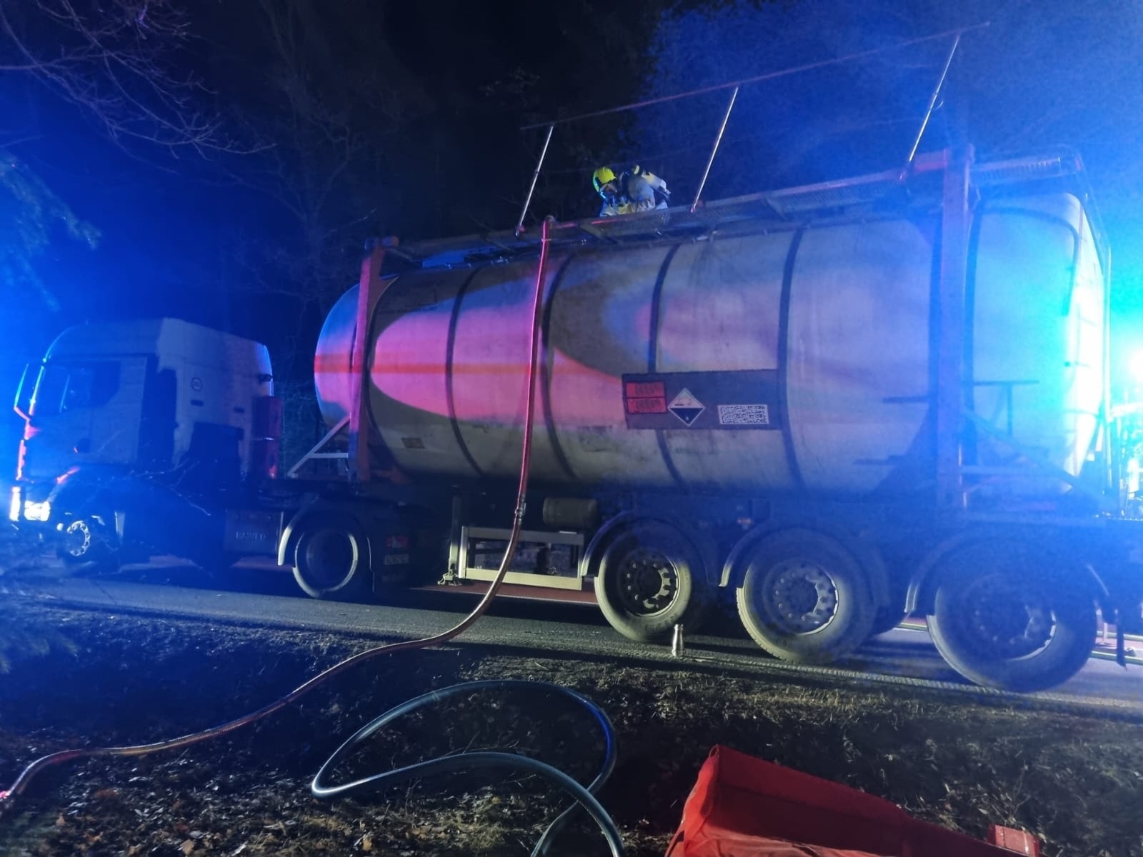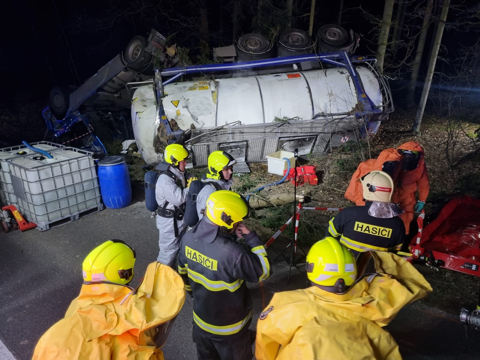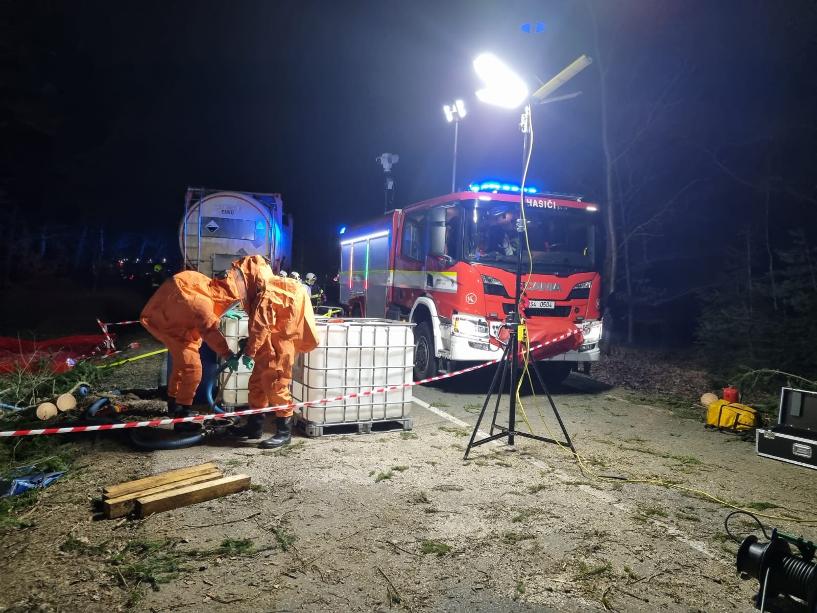 Hasiči pak pokračovali v přečerpávání nebezpečné látky do přistavené náhradní cisterny. Na místo si ještě povolali velitelský kontejner ze slánské stanice a dobrovolnou jednotku Braškov-Valdek předurčenou na ochranu obyvatelstva, která disponuje vybavením na týlové zabezpečení při dlouhodobějších zásazích.