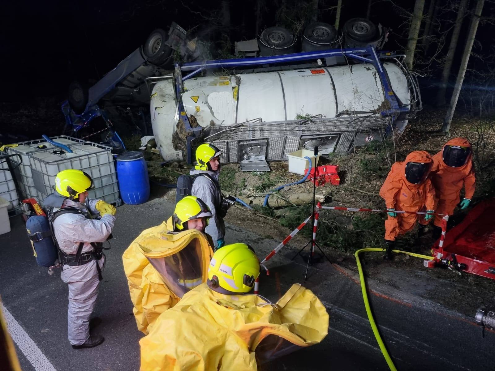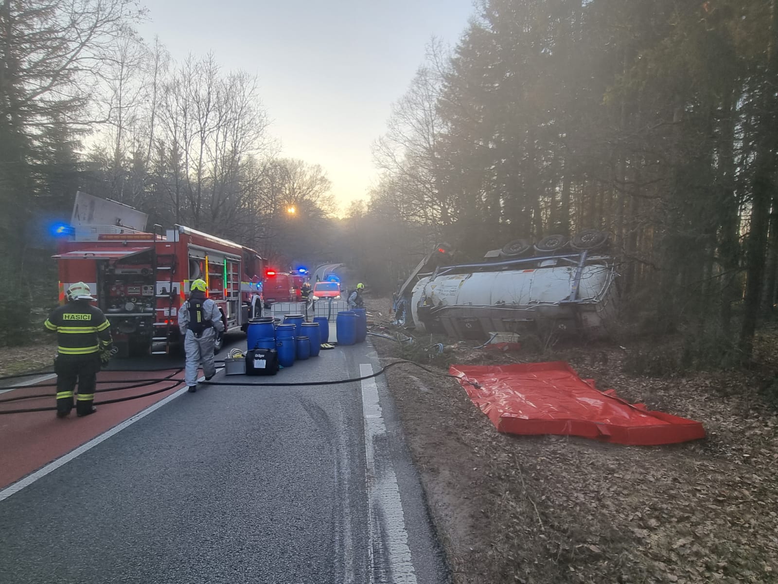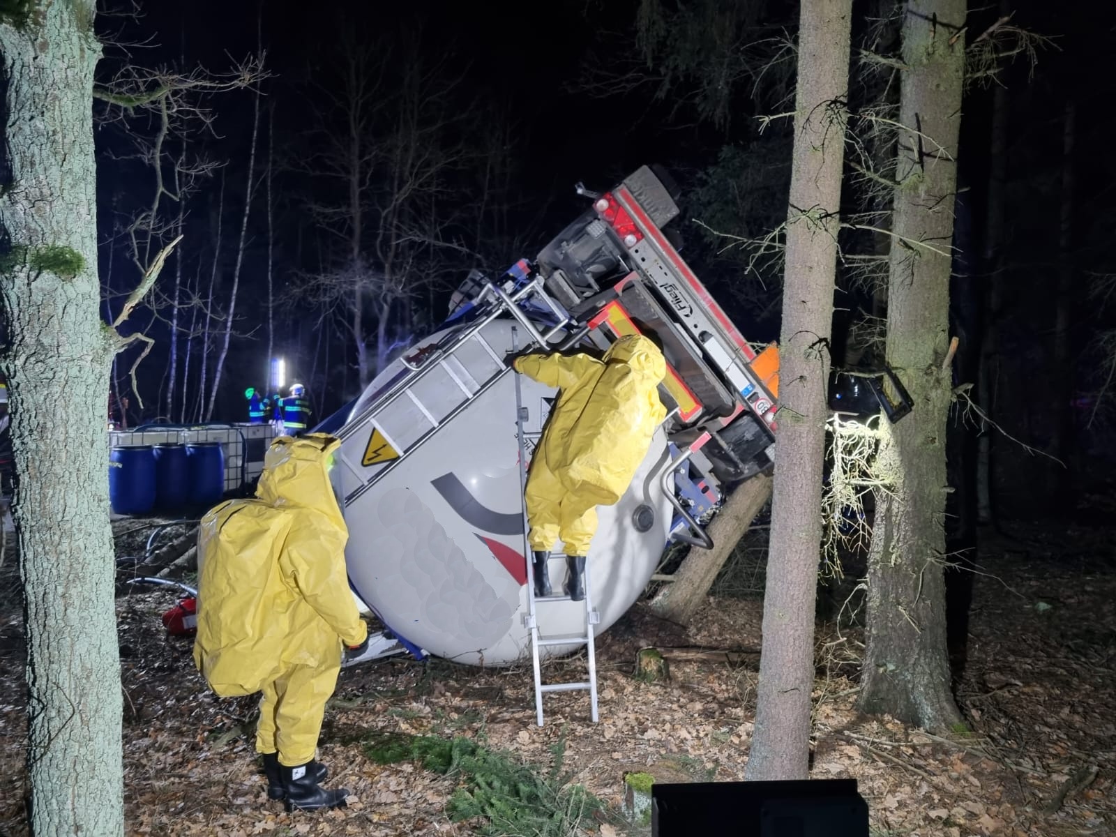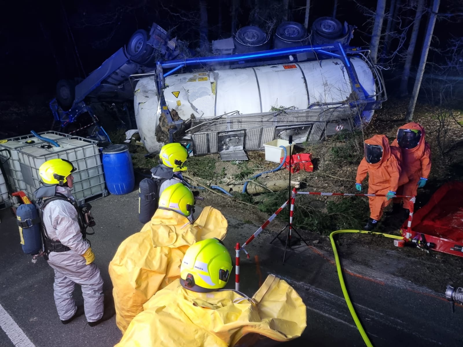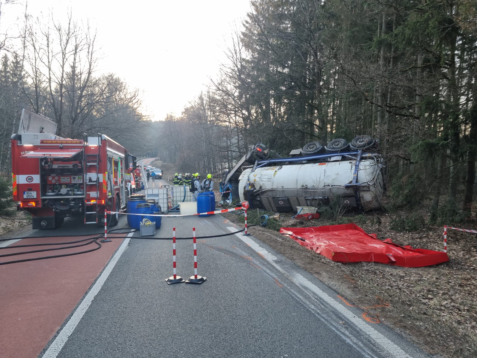 Hasiči pak pokračovali v přečerpávání nebezpečné látky do přistavené náhradní cisterny. Na místo si ještě povolali velitelský kontejner ze slánské stanice a dobrovolnou jednotku Braškov-Valdek předurčenou na ochranu obyvatelstva, která disponuje vybavením na týlové zabezpečení při dlouhodobějších zásazích.