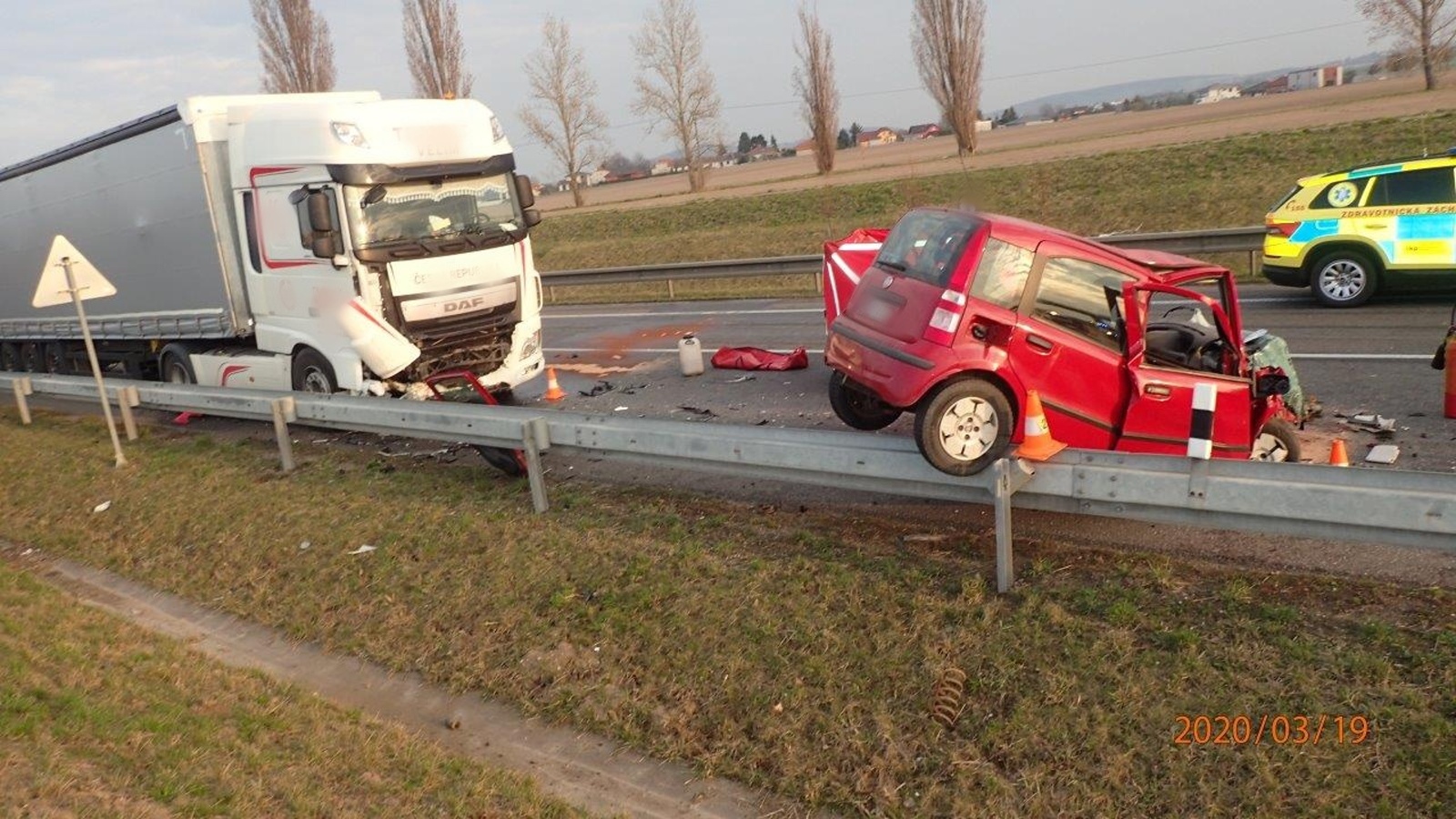 Ve čtvrtek 19. března jedenáct minut po šestnácté hodině byla na linku tísňového volání Hasičského záchranného sboru Středočeského kraje nahlášena vážná dopravní nehoda na silnici číslo I/38 v prostoru mimoúrovňové křižovatky na obchvatu Kolína.