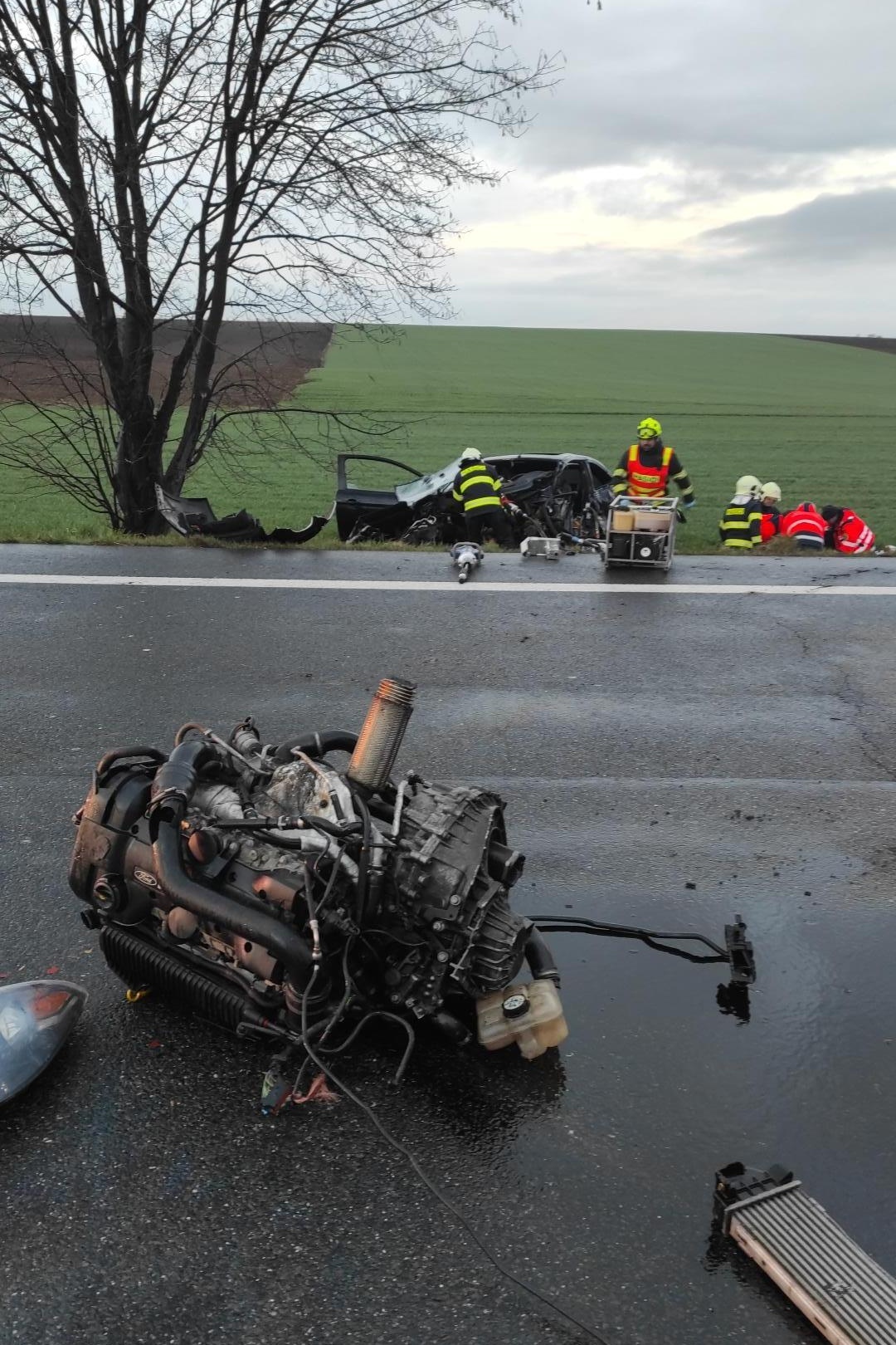 Čelní srážka dvou osobních automobilů uzavřela v podvečer kolínskou silnici u obce Chocenice, která spadá pod Břežany I. Po střetu zůstaly zdemolované vozy vzdálené asi dvě stě metrů od sebe.