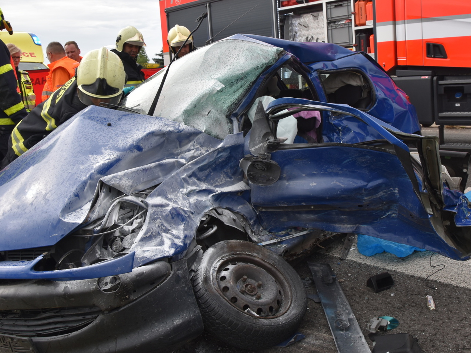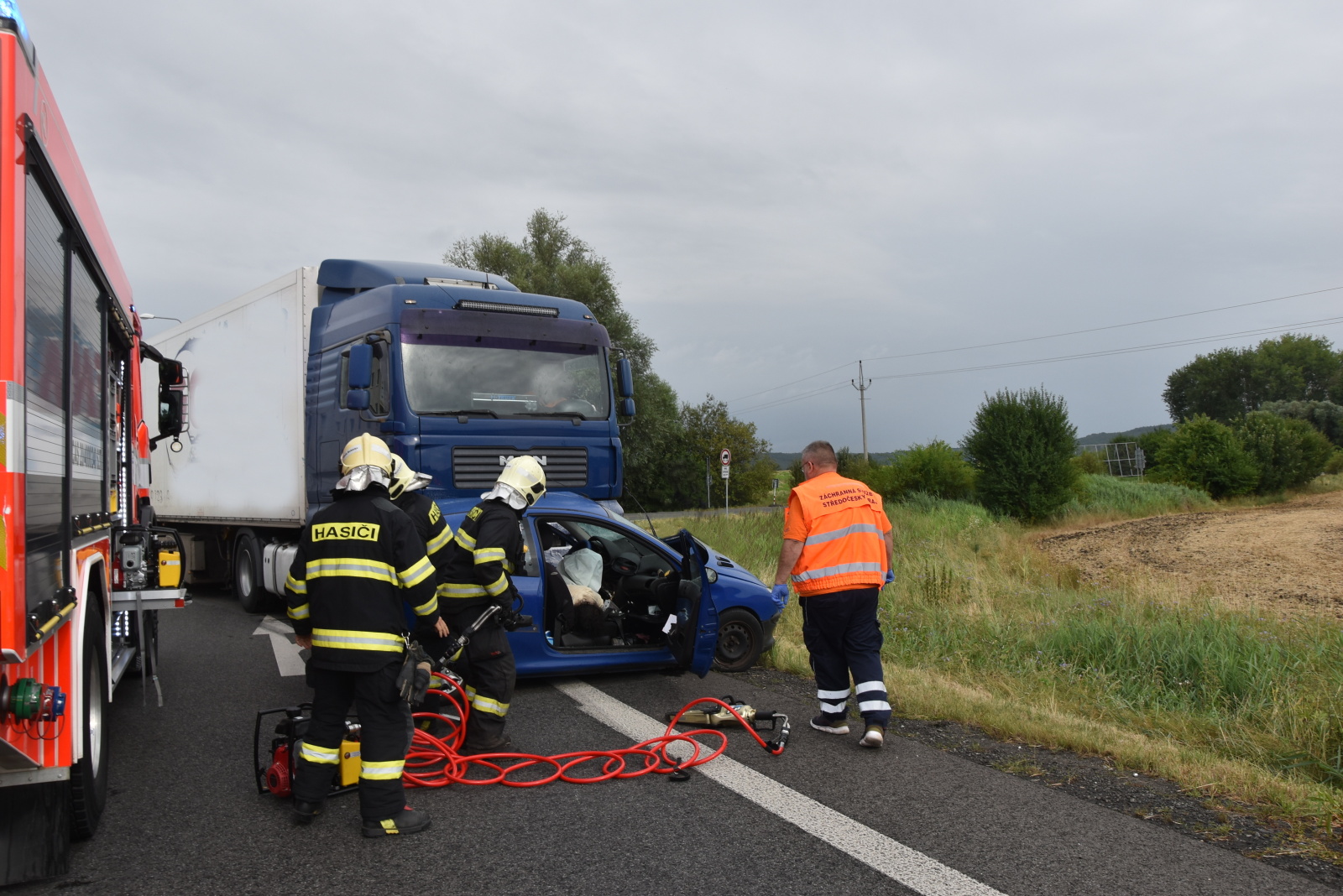 Velitel zásahu po příjezdu na místo upřesnil, že došlo ke kolizi, při které nákladní souprava narazila do boku osobního automobilu. Uvnitř osobního vozu se nacházela zaklíněná řidička, která nejevila známky života. Zraněný spolujezdec byl po nezbytném ošetření převezen sanitkou do nemocnice v Mladé Boleslavi. Řidič nákladní soupravy zraněn nebyl.