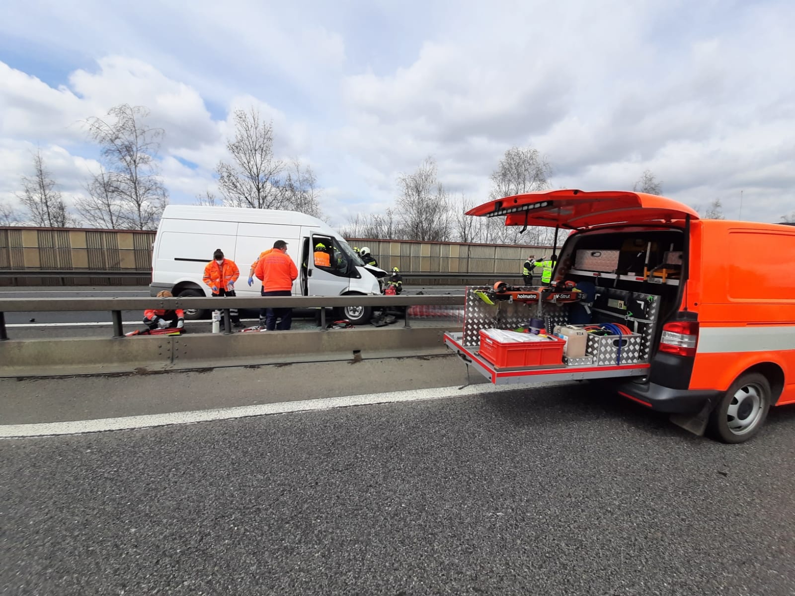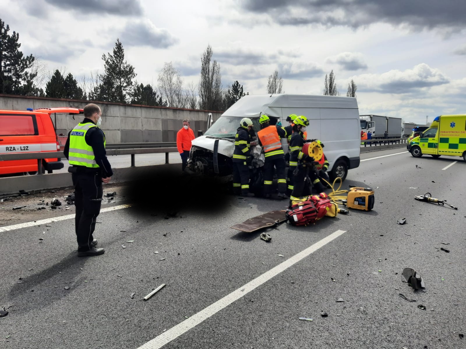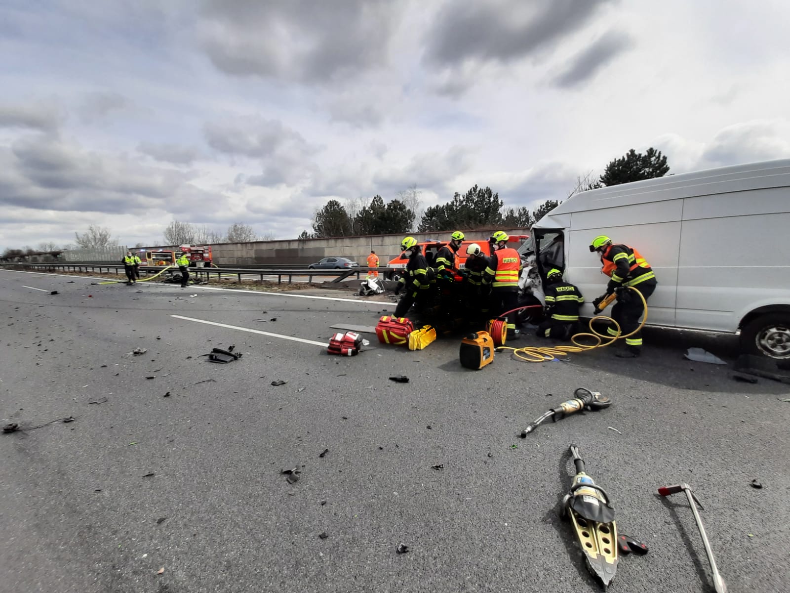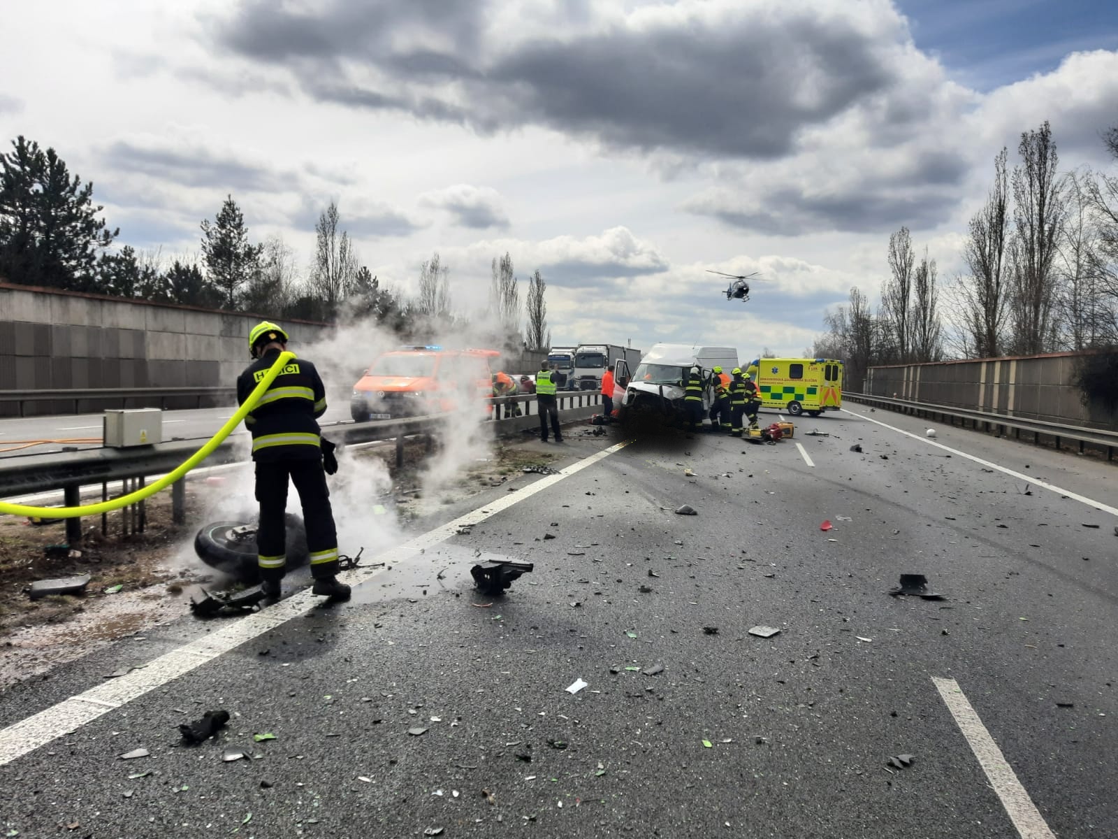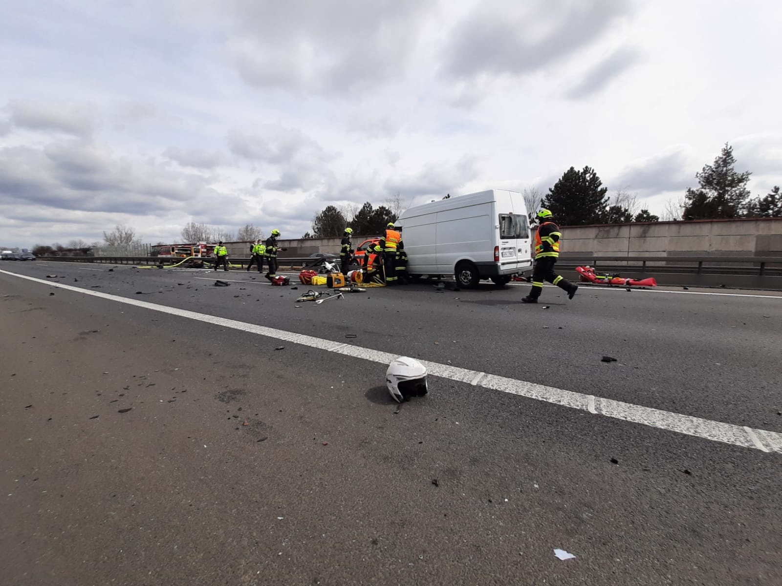 Provoz na dálnici byl z důvodu maximálního urychlení zahájení záchranných prací uzavřen v obou směrech. Hasiči provedli komplikované vyproštění řidiče dodávky hydraulickým nářadím a současně jedním vodním proudem likvidovali požár motocyklu. Po ošetření zdravotnickou záchrannou službou pak přenesli zraněného muže do vrtulníku, kterým byl pacient transportován do jedné z pražských nemocnic. Řidič motocyklu podle lékaře utrpěl při střetu vážná zranění, kterým na místě podlehl.