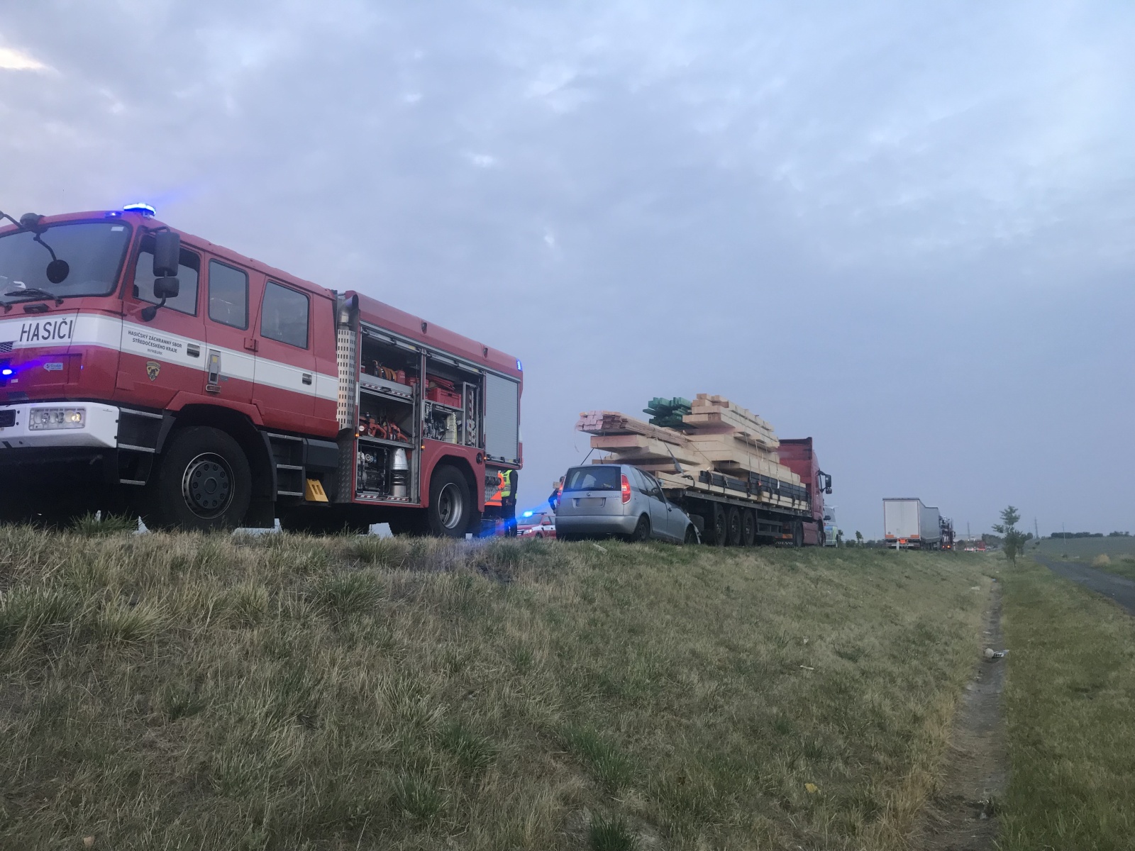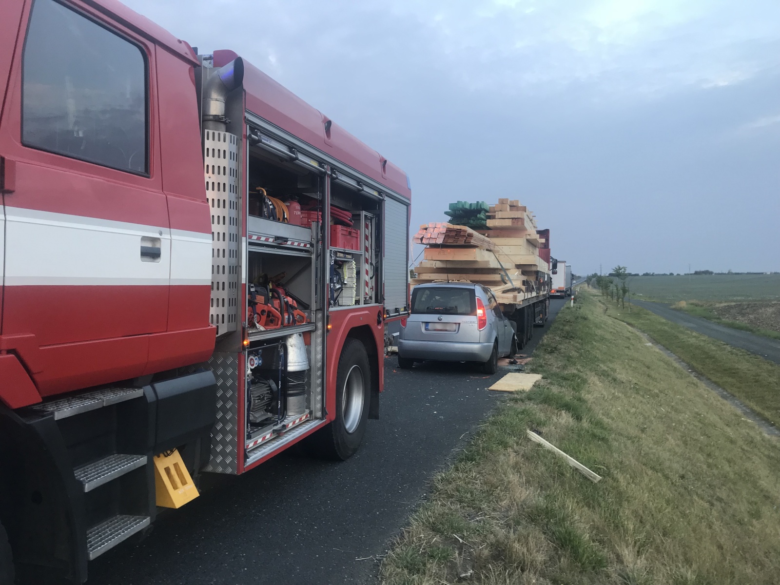 Hasiči nejprve odstranili dřevěné desky, které nákladní vozidlo převáželo, aby se dostali k řidiči. Hned podle prvotního ohledání bylo zřejmé, že řidič nehodu nepřežil, což následně potvrdila lékařka zdravotnické záchranné služby.