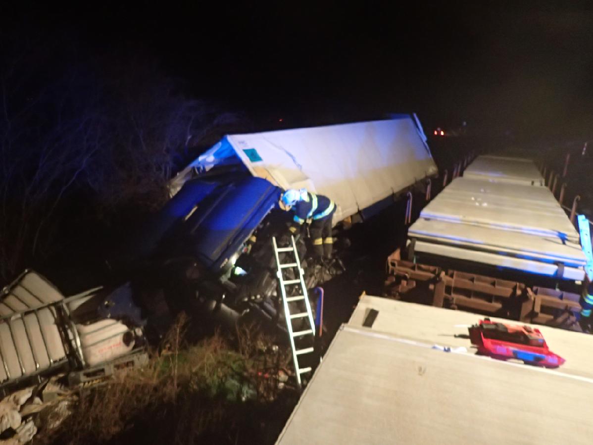 Jednotky na místě zamezily úniku motorové nafty z roztržené palivové nádrže a po zabránění kontaminace životního prostředí, provedly odčerpání obsahu nádrže do náhradních nádob. Následně soukromá firma vyprostila kamion z místa mimo komunikaci.