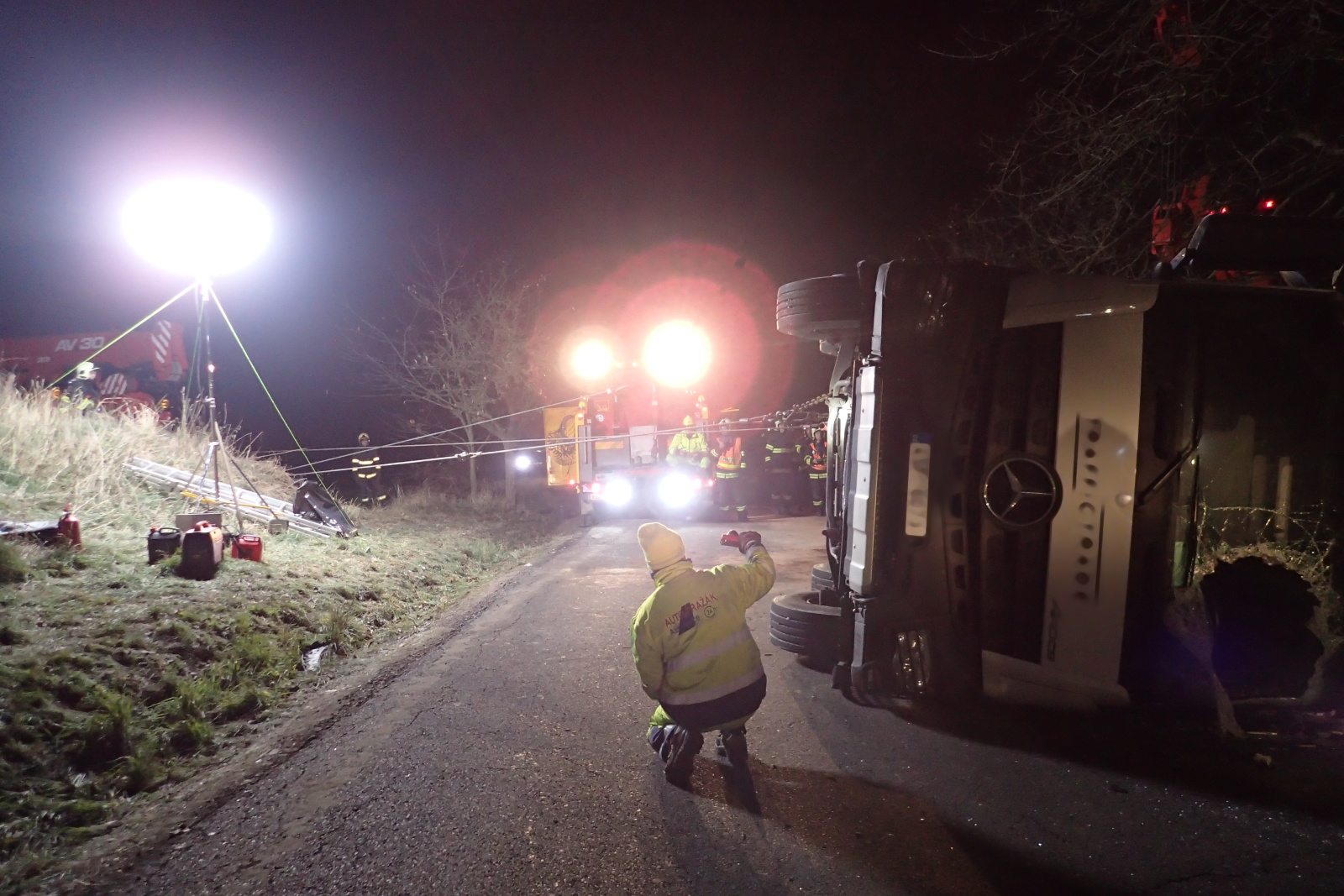 Velitel zásahu požádal o vyslání velkého vyprošťovacího automobilu, který následně vyrazil ze stanice Kladno. Kromě toho vyjel také chemický kontejner ze stanice Říčany, s jehož pomocí hasiči zlikvidovali uniklé pohonné hmoty. Vzhledem k tomu, že celková váha vozidla byla kolem 35 tun, bylo nutné nejprve z mixu odsát přepravovaný beton.