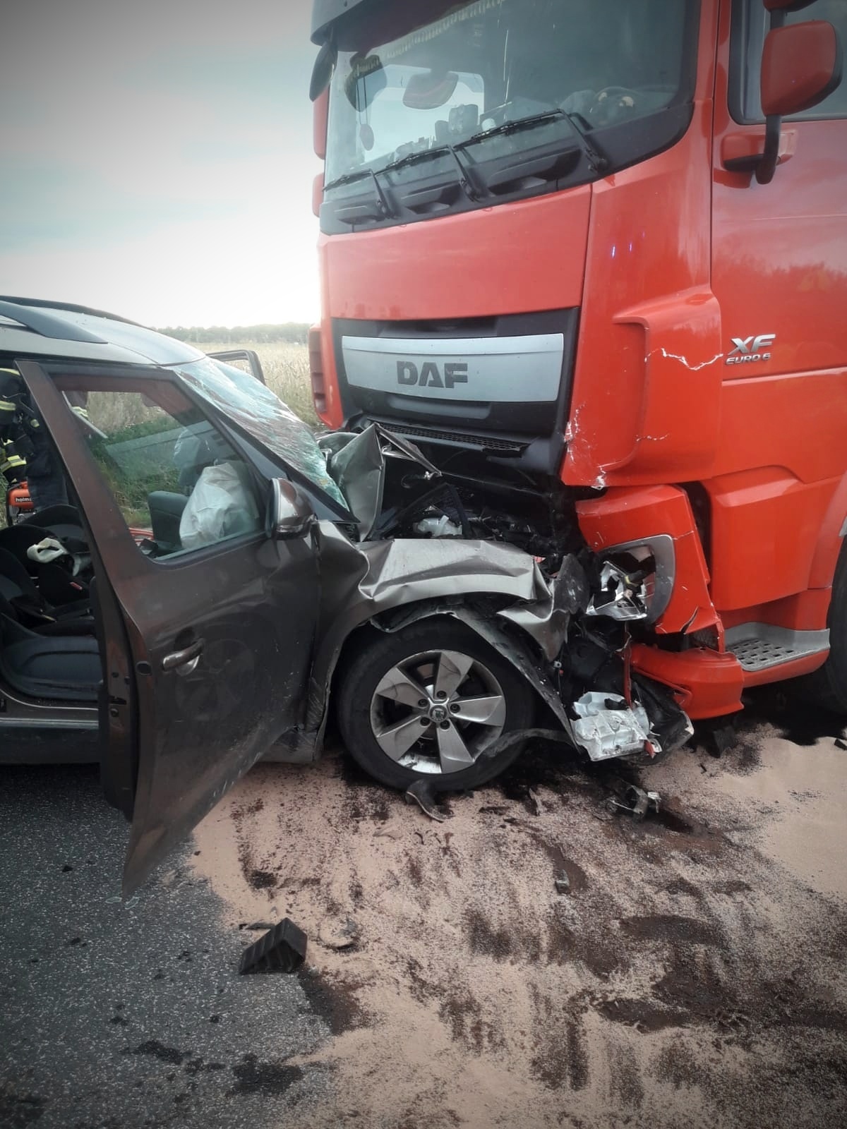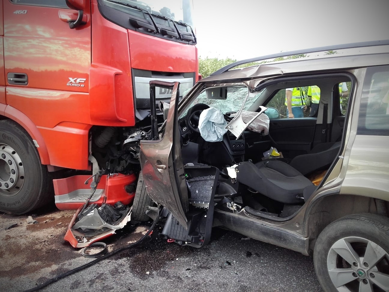 K nehodě, při které se asi půl kilometru od mimoúrovňové křižovatky se silnicí číslo 12 čelně střetl kamion s osobním automobilem, vyjeli profesionální hasiči ze stanic Kolín a Poděbrady. Zdravotnická záchranná služba povolala na místo kromě sanitek i vrtulník.