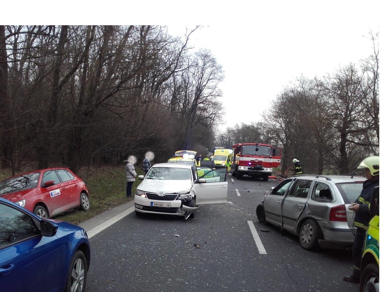 V úterý 14. března v dopoledních hodinách se na hlavním tahu mezi Mělníkem a Mladou Boleslaví stala vážná dopravní nehoda tří osobních automobilů a dodávky.