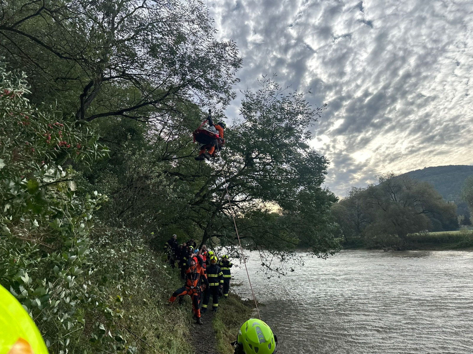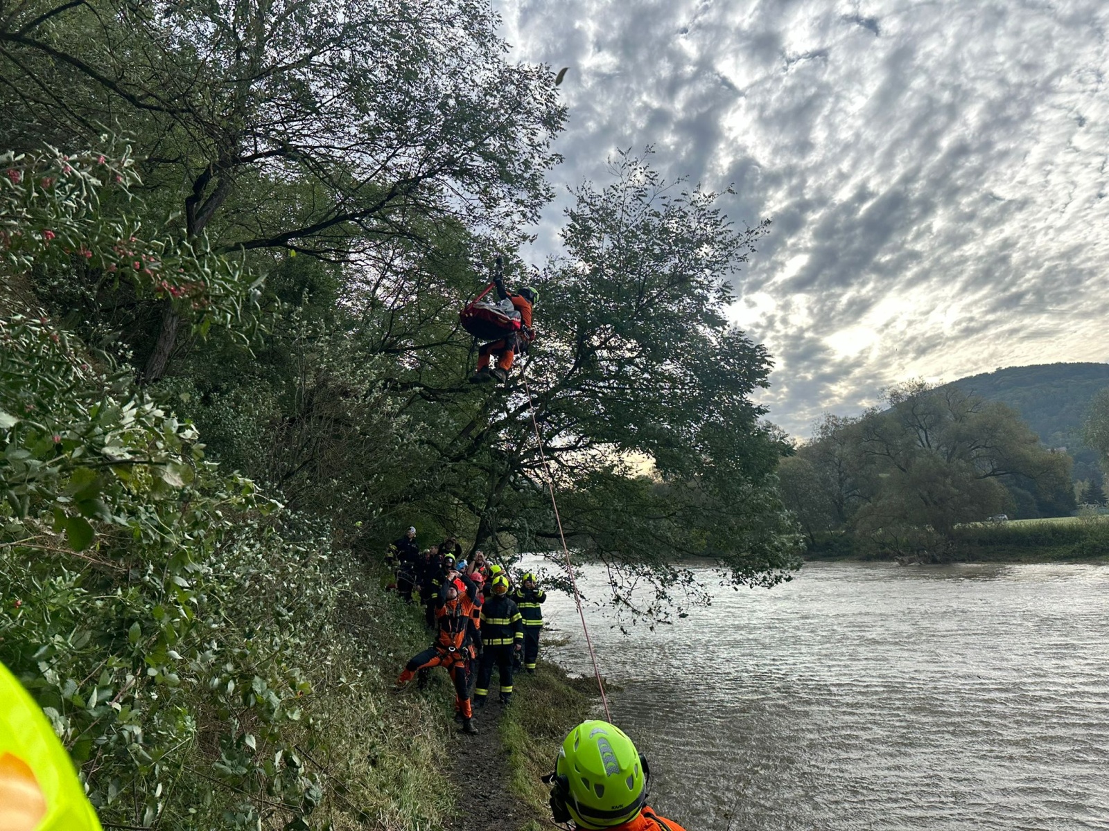 Pomocí čtyřkolky se hasiči dostali skoro až ke zraněnému. Osoba byla ošetřena posádkou zdravotnické záchranné služby a následně byla převezena na vhodné místo, odkud mohla být pomocí palubního jeřábu vrtulníku transportována k sanitnímu vozu.