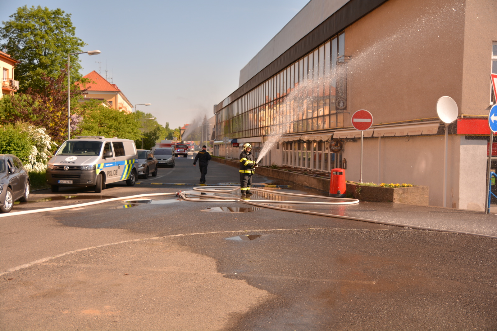 Zde za extrémně špatné viditelnosti způsobené uniklým amoniakem hasiči prováděli zkrápění vodní mlhou a následně i uzavření armatur. Vodní mlhu vytvářely jednotky i vně zimního stadionu, aby se zamezilo úniku štiplavého plynu dál do okolí. Na místo se dostavila výjezdová skupina chemické laboratoře HZS Středočeského kraje z Kamenice, která krátce před jedenáctou hodinou potvrdila úspěšnost zvolené taktiky a zastavení úniku nebezpečné látky.