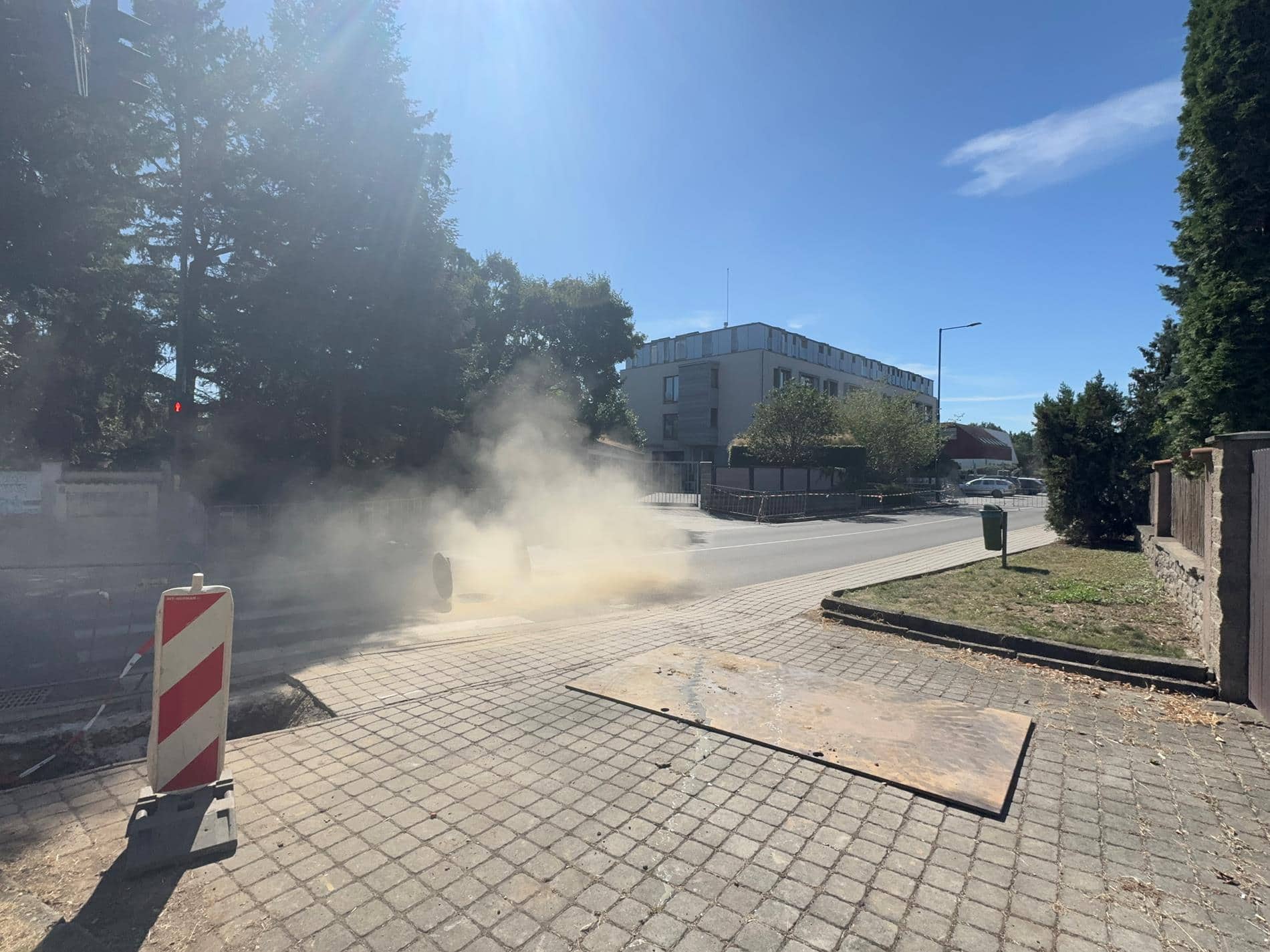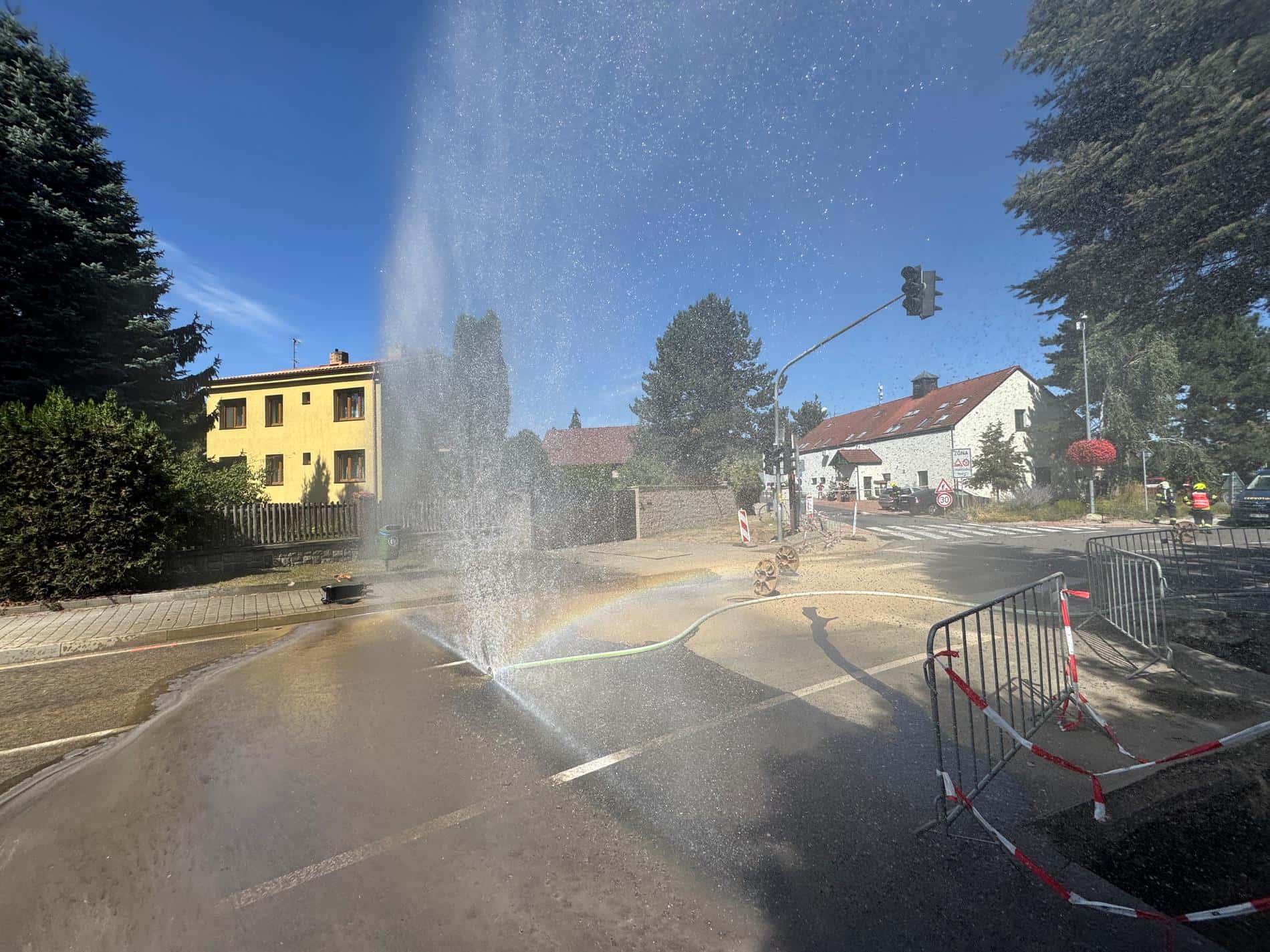 Současně probíhají kontrolní měření v uzavřené oblasti a odpojování semaforů či další bezpečnostní opatření. Aby bylo poškozené plynové vedení obnaženo, zahájily se výkopové práce.