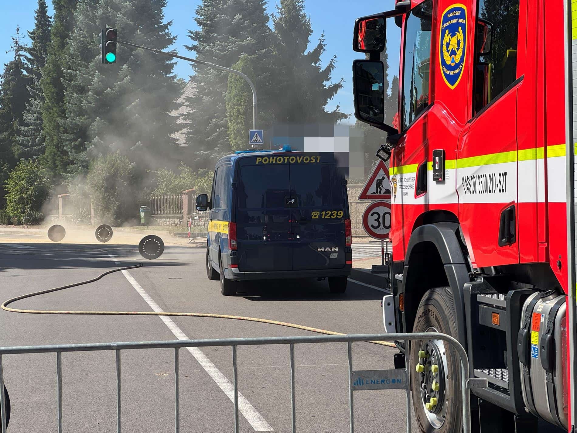 Hasiči zároveň skrápějí oblast vodním proudem, protože únik plynu stále pokračoval..Situace je pod kontrolou.