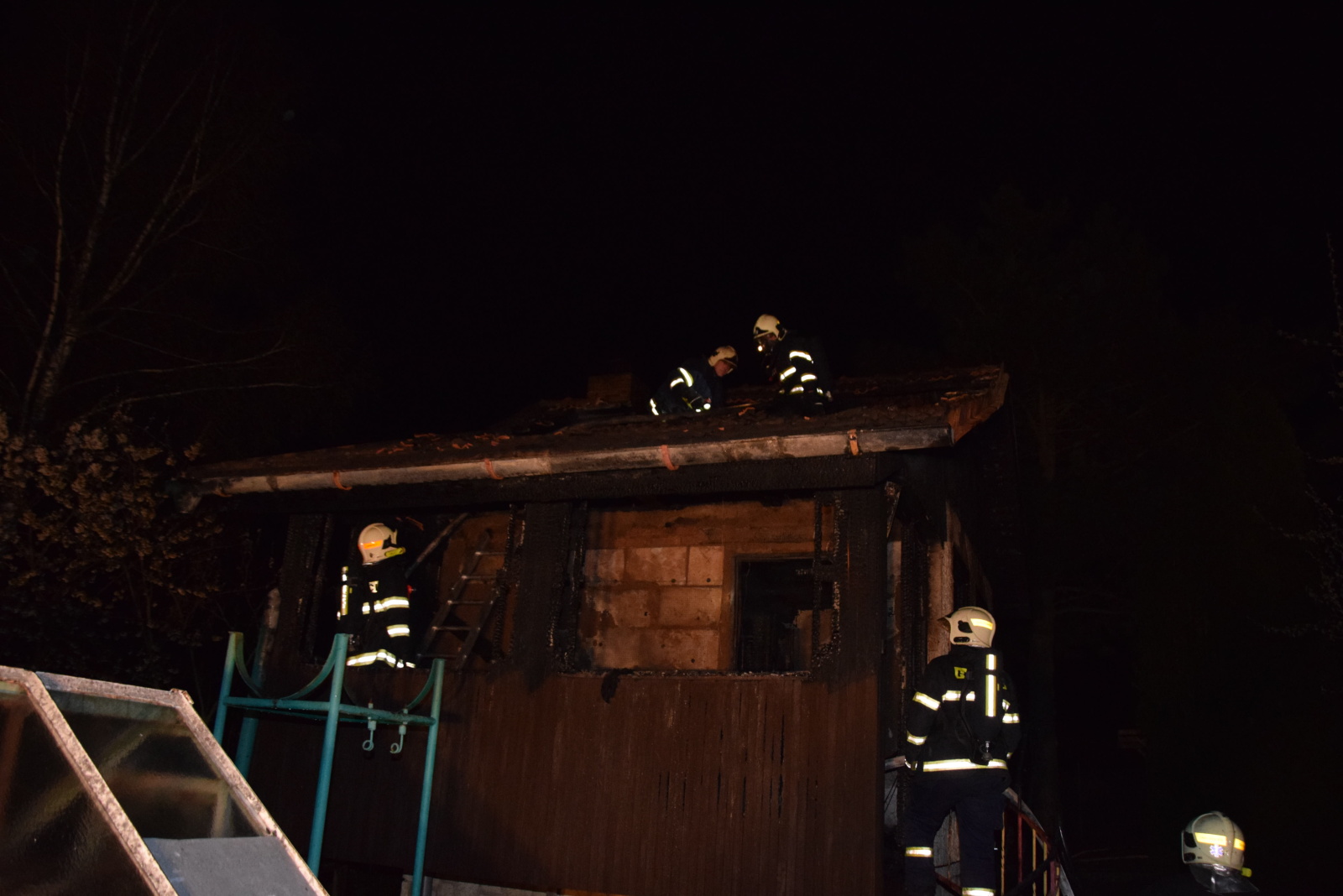 Přestože první jednotka dorazila k požáru po sedmi minutách od jeho ohlášení, zděná chata o rozměrech 5 x 5 metrů s dřevěným obložením už byla celá v plamenech, včetně vnitřního vybavení. Majiteli se podařilo objekt včas opustit, takže se událost obešla bez zranění. Pomocí dvou proudů C hasiči v dýchací technice požár za necelou půlhodinu lokalizovali.