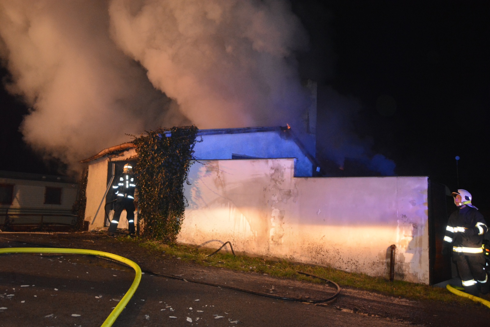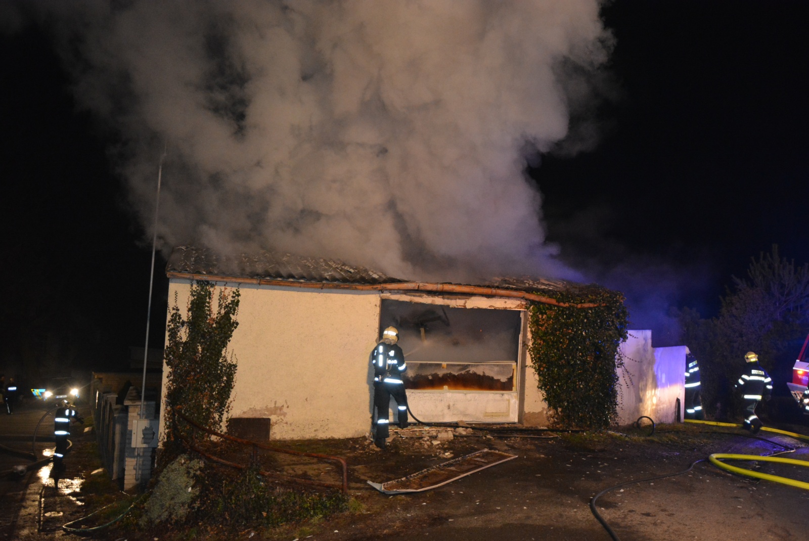 celá garáž a požár se střechou rozšiřuje na přilehlý rodinný dům. Zásah probíhal čtyřmi C proudy a bylo zřejmé, že hašení bude probíhat delší dobu. Kvůli zajištění pohotovosti pro případ dalších mimořádných událostí byla stanice Benátky nad Jizerou zálohována dobrovolnou jednotkou Lysá nad Labem, která byla připravena k výjezdu na své zbrojnici.