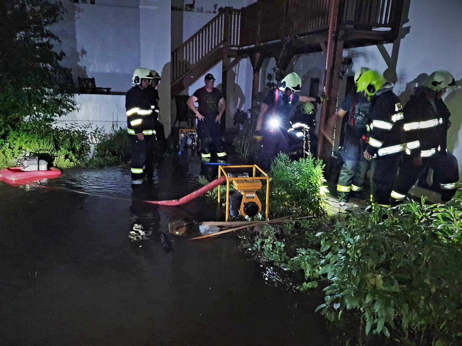 První žádost o pomoc po silném dešti zaznamenala linka tísňového volání HZS Středočeského kraje deset minut po devatenácté hodině z Černošic, kde došlo k zatopení garáže a sklepa rodinného domu. Dvě jednotky hasičů odčerpaly vodu pomocí plovoucí čerpadla.