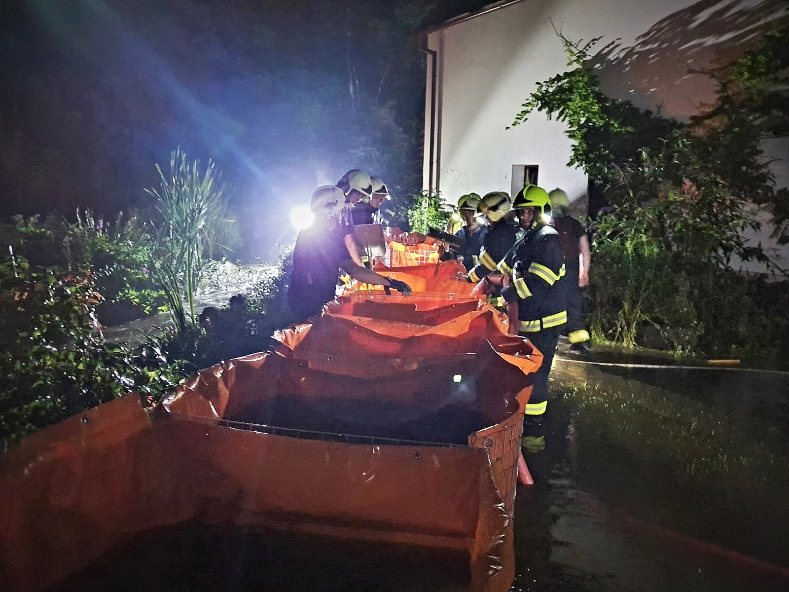 Asi největší problémy zaznamenali hasiči v obci Vodochody v okrese Praha-východ, kde od půl jedenácté zasahovalo postupně sedm jednotek. Voda se obcí valila na bývalý mlýn a hasiči museli postavit z pytlů s pískem a z mobilních povodňových zábran protipovodňovou hráz. Následně pomocí několika plovoucích a kalových čerpadel odčerpávali obrovskou lagunu vody. Zásah byl ukončen okolo půl třetí v noci na pondělí.
