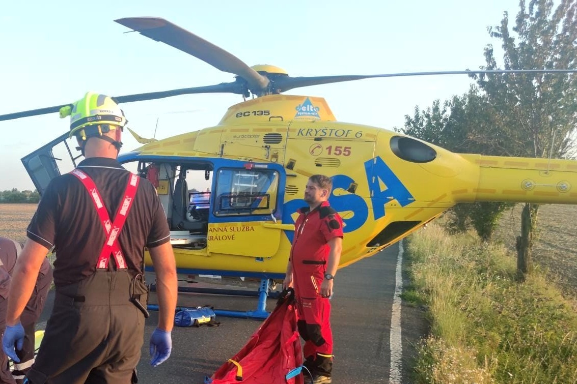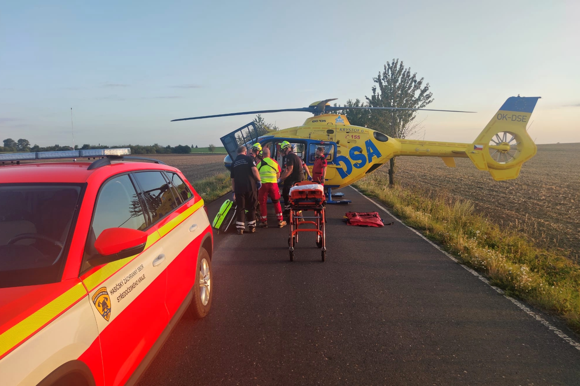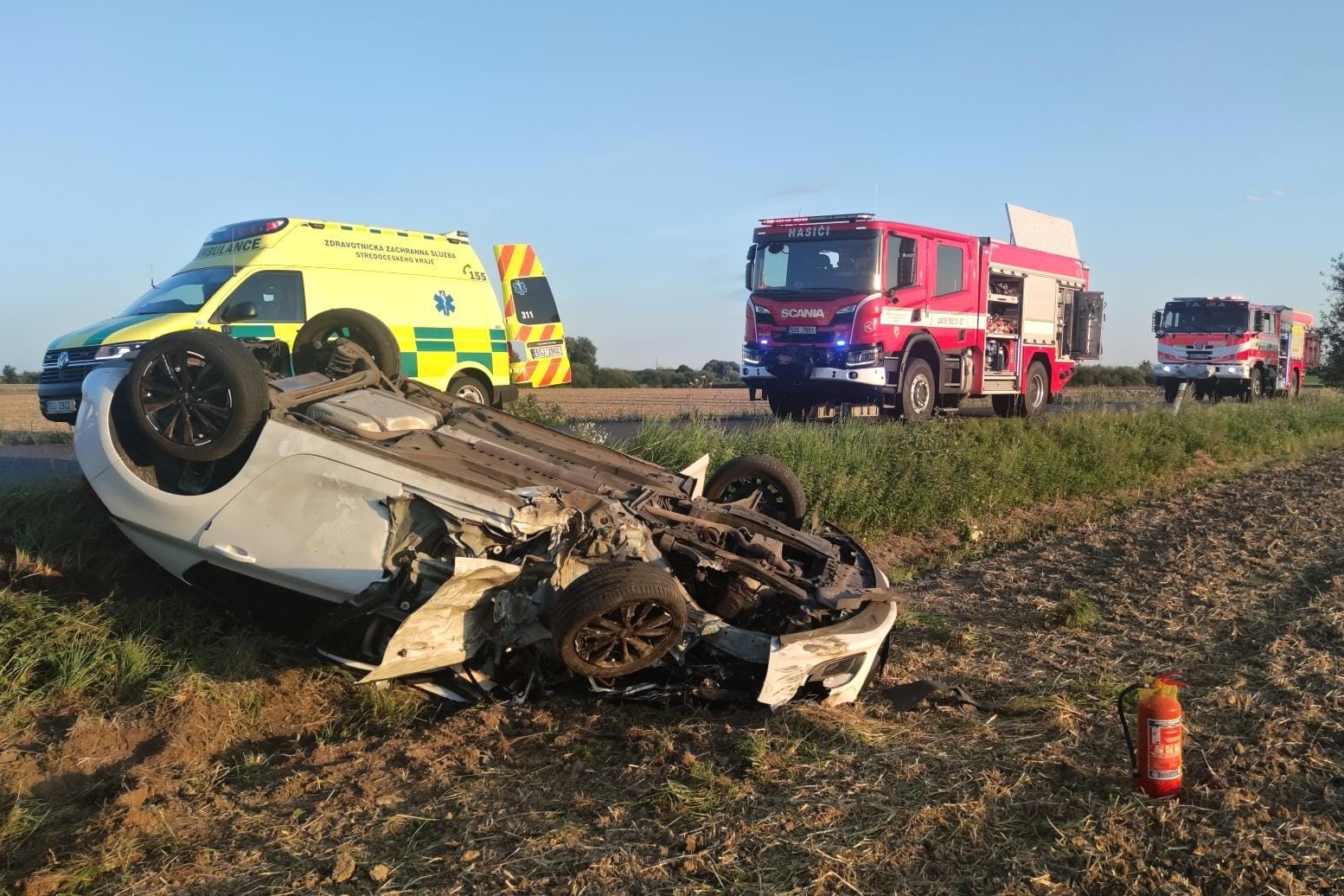 Hasiči vyprostili z převráceného osobního vozidla zaklíněného řidiče a předali ho zdravotnické záchranné službě. Po nezbytném ošetření pomohli s přenesením pacienta na palubu přivolaného vrtulníku, který pak zraněného muže transportoval do nemocnice v Praze na Vinohradech. Druhý řidič vyvázl ze střetu bez zranění.