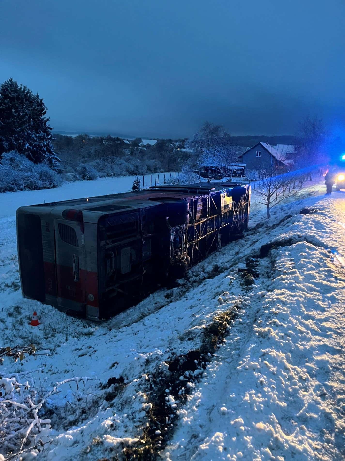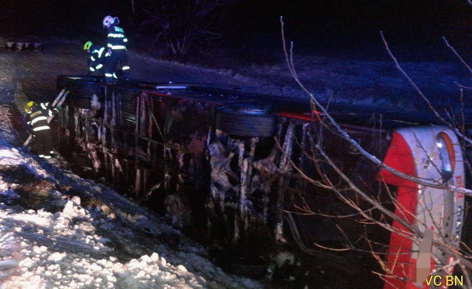 Vážná nehoda autobusu: Vozidlo skončilo na boku, zasahovaly jednotky IZS