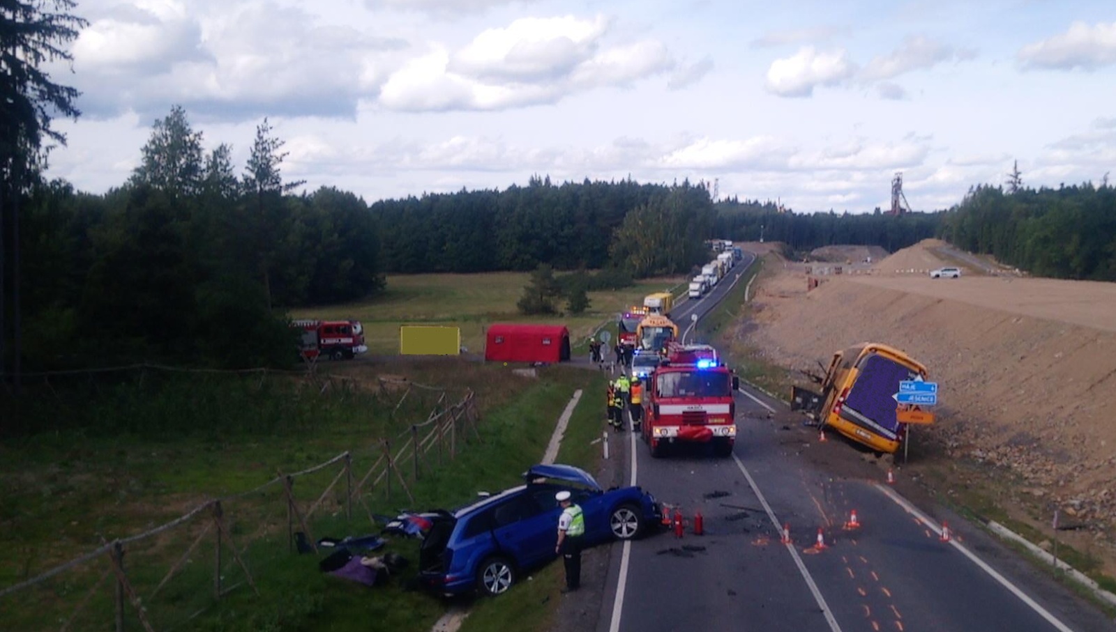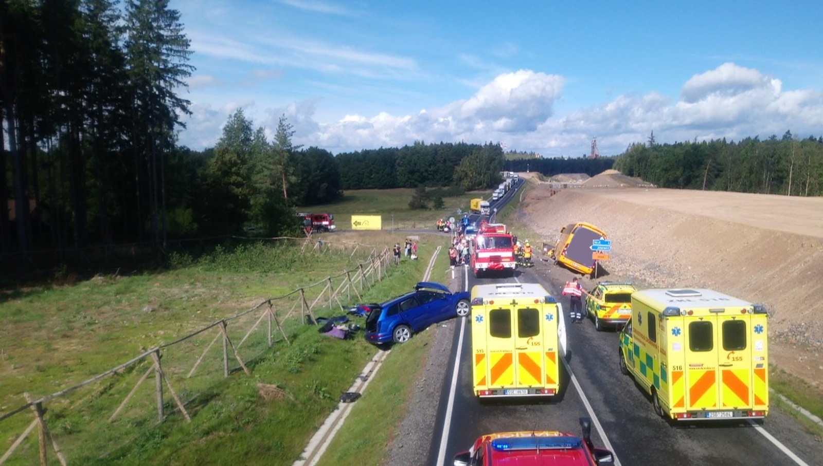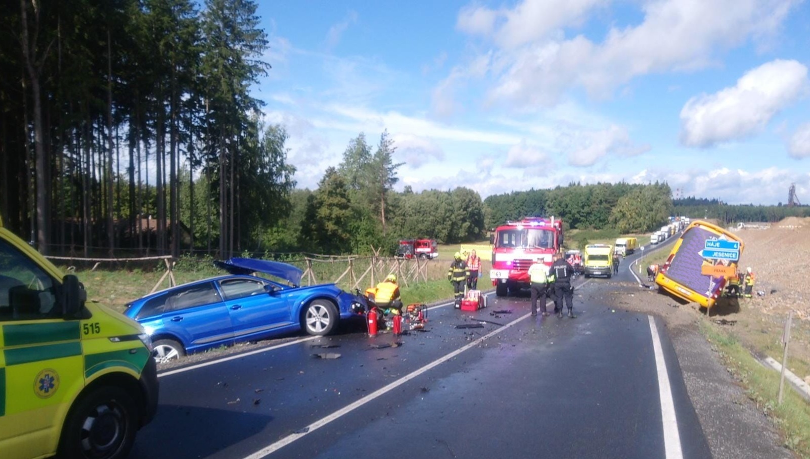 V úterý 19. září třináct minut po poledni přijali středočeští hasiči informaci o dopravní nehodě autobusu a osobního automobilu na strakonické silnici u obce Jesenice poblíž Příbrami v místě souběžné stavby nového úseku dálnice D4.