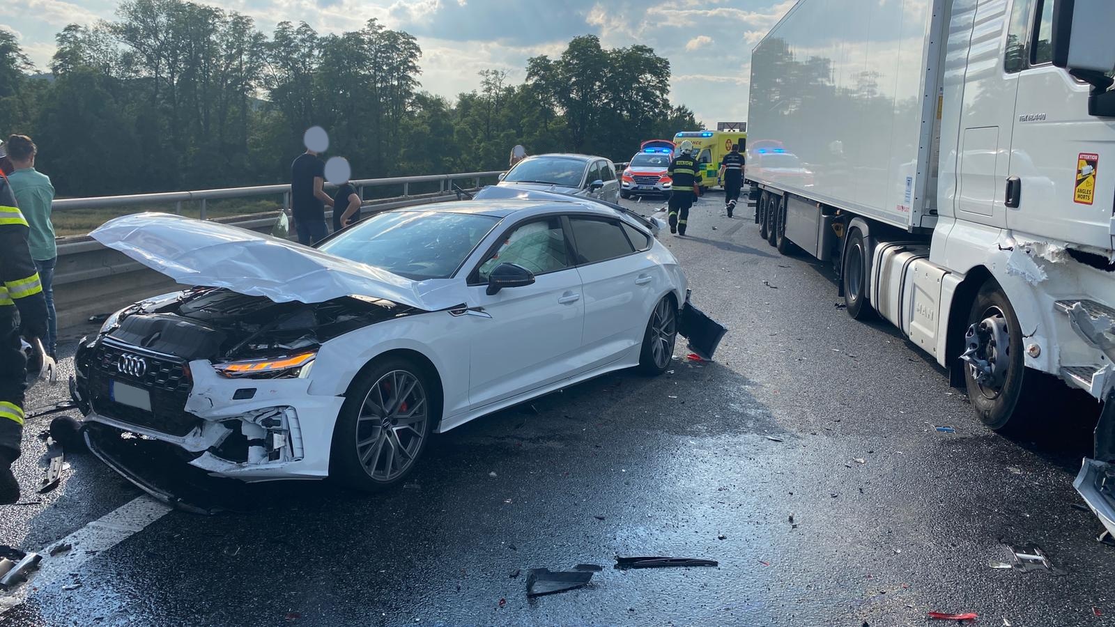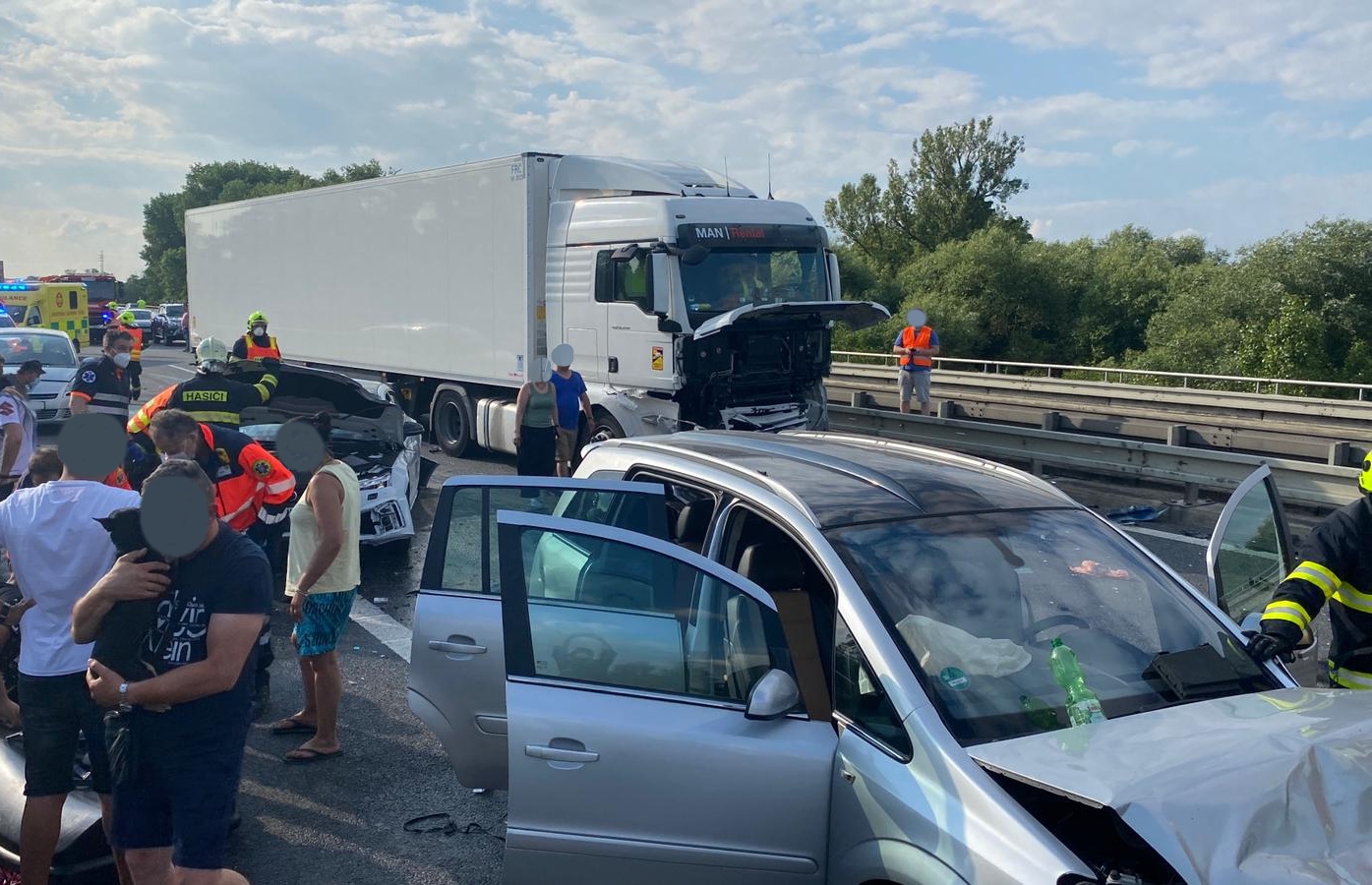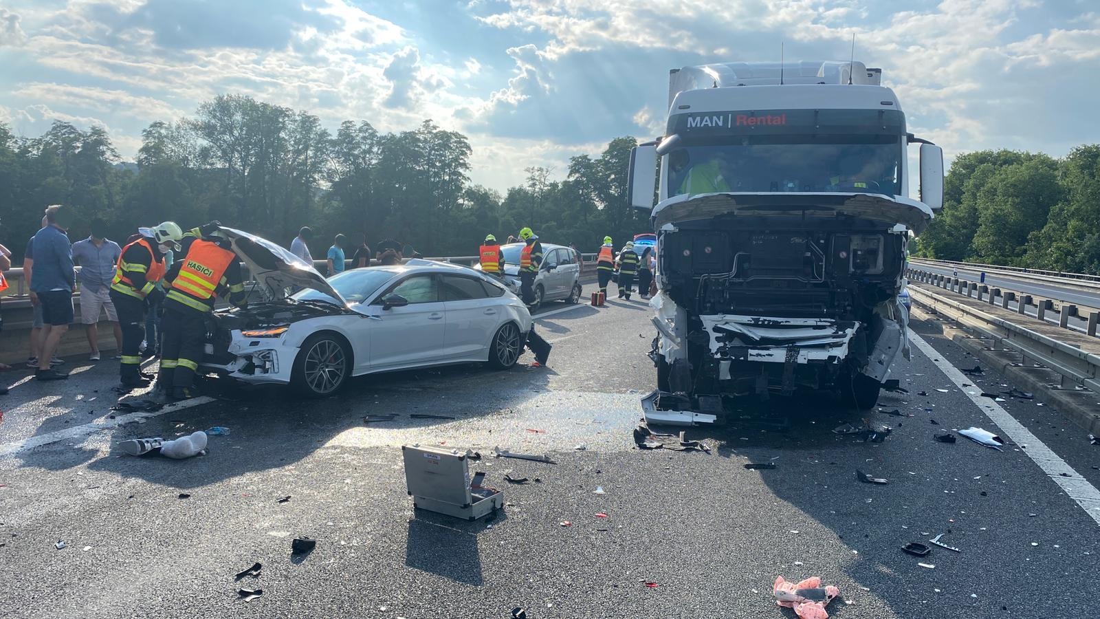 V sobotu 3. července jedenáct minut před 18. hodinou přijalo Krajské operační a informační středisko HZS Středočeského kraje informaci o vážné dopravní nehodě na dálnici D8 před kilometrem 16,5 ve směru do Prahy, to znamená ke konci přemostění přes řeku Vltavu v katastru Nové Vsi na Mělnicku.