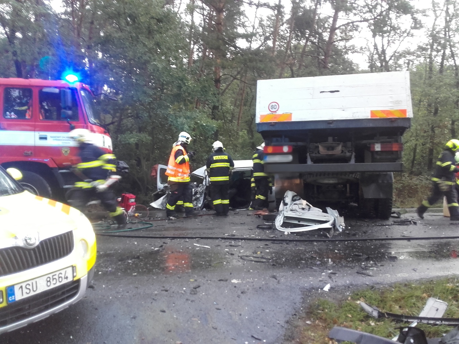 jednotku z Nymburka. První jednotka, která byla na místě už pět minut od ohlášení události, zjistila, že jde o čelní střet nákladního vozidla s osobním, v němž zůstala zaklíněna řidička.