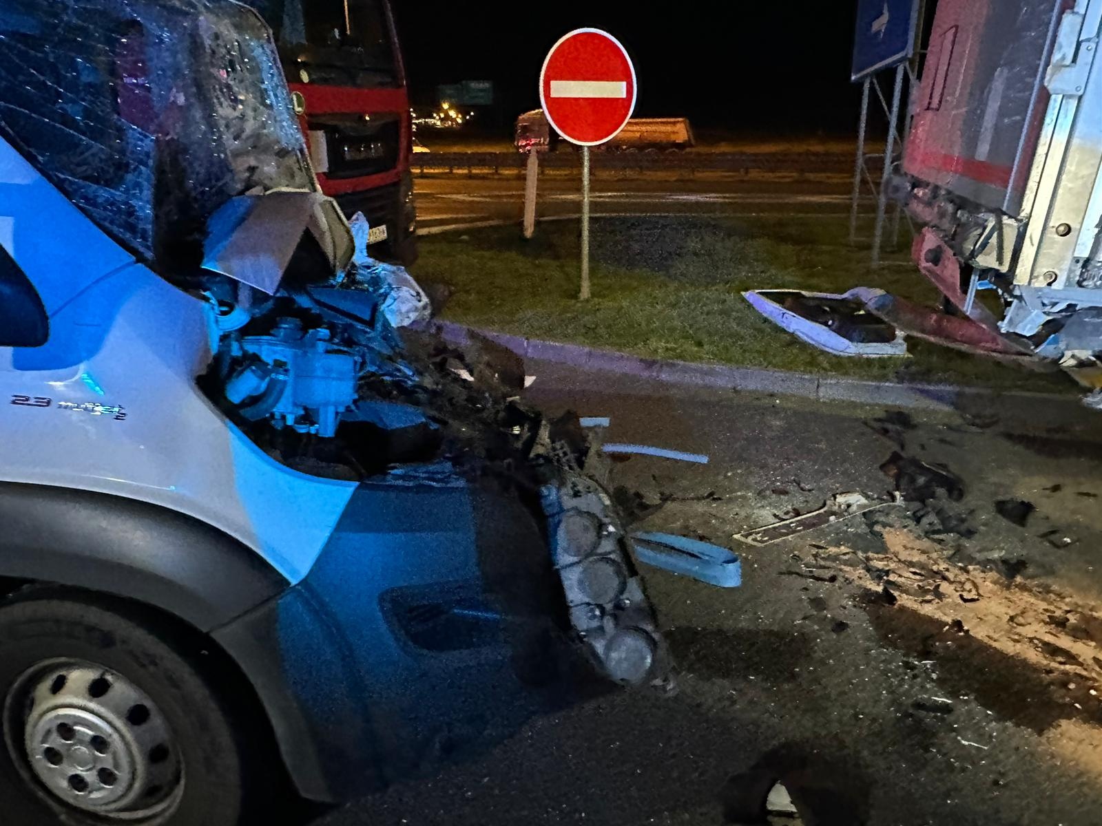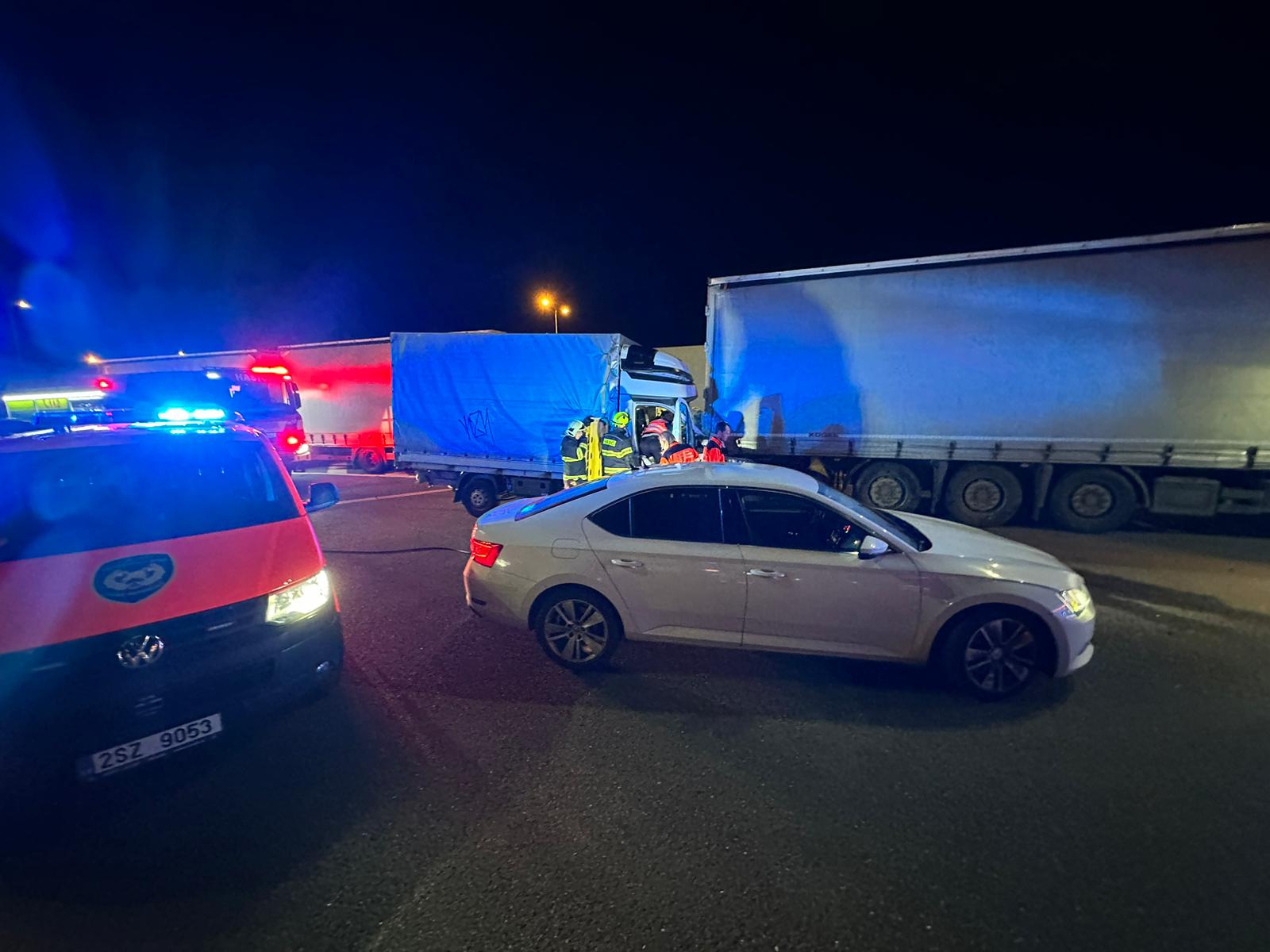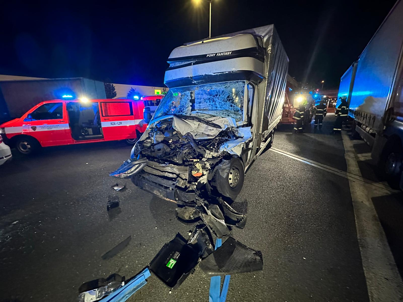 Mimořádná událost se nacházela na desátém kilometru u dálniční křižovatky Modletice vedle benzínové čerpací stanice. Dodávkový vůz narazil zezadu do stojícího nákladního automobilu. Zraněný řidič vozidla zůstal uvnitř zaklíněn.