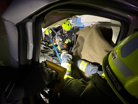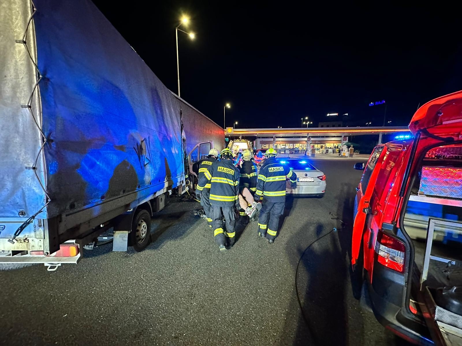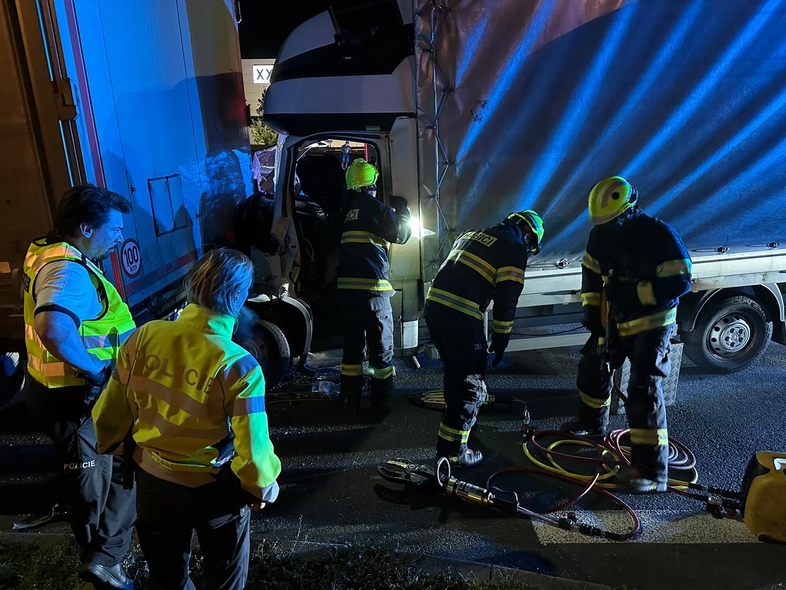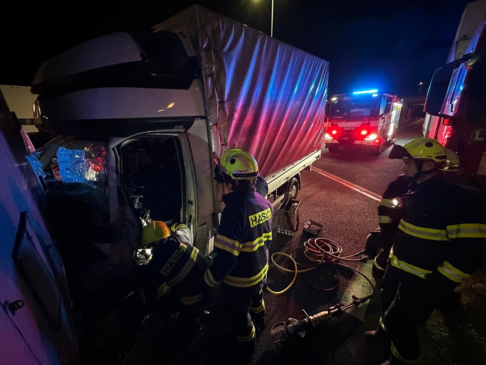 Po příjezdu na místo začali hasiči ihned pracovat na vyproštění zaklíněného řidiče dodávkového automobilu. Vozidlo bylo stabilizováno a pomocí hydraulického vyprošťovacího zařízení se podařilo zraněnou osobu vyprostit. Tu pak transportovali do sanitního vozu zdravotnické záchranné služby. Po nezbytném ošetření byl pacient převezen do pražské Fakultní nemocnice Královské Vinohrady.