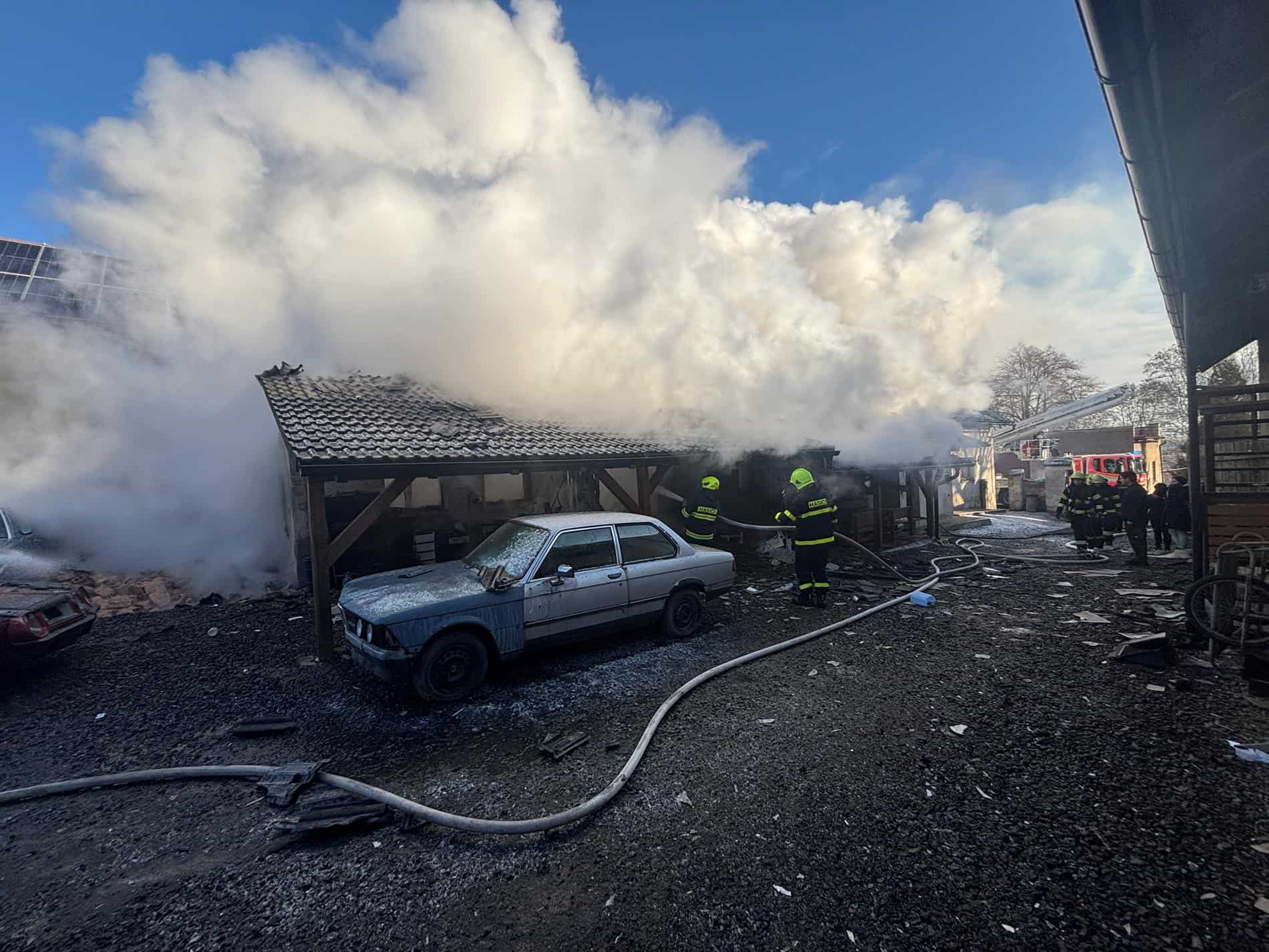 Vážný požár dílny ohrozil rodinný dům a vyžádal si rozsáhlý zásah hasičů