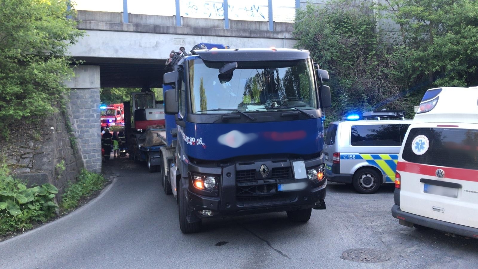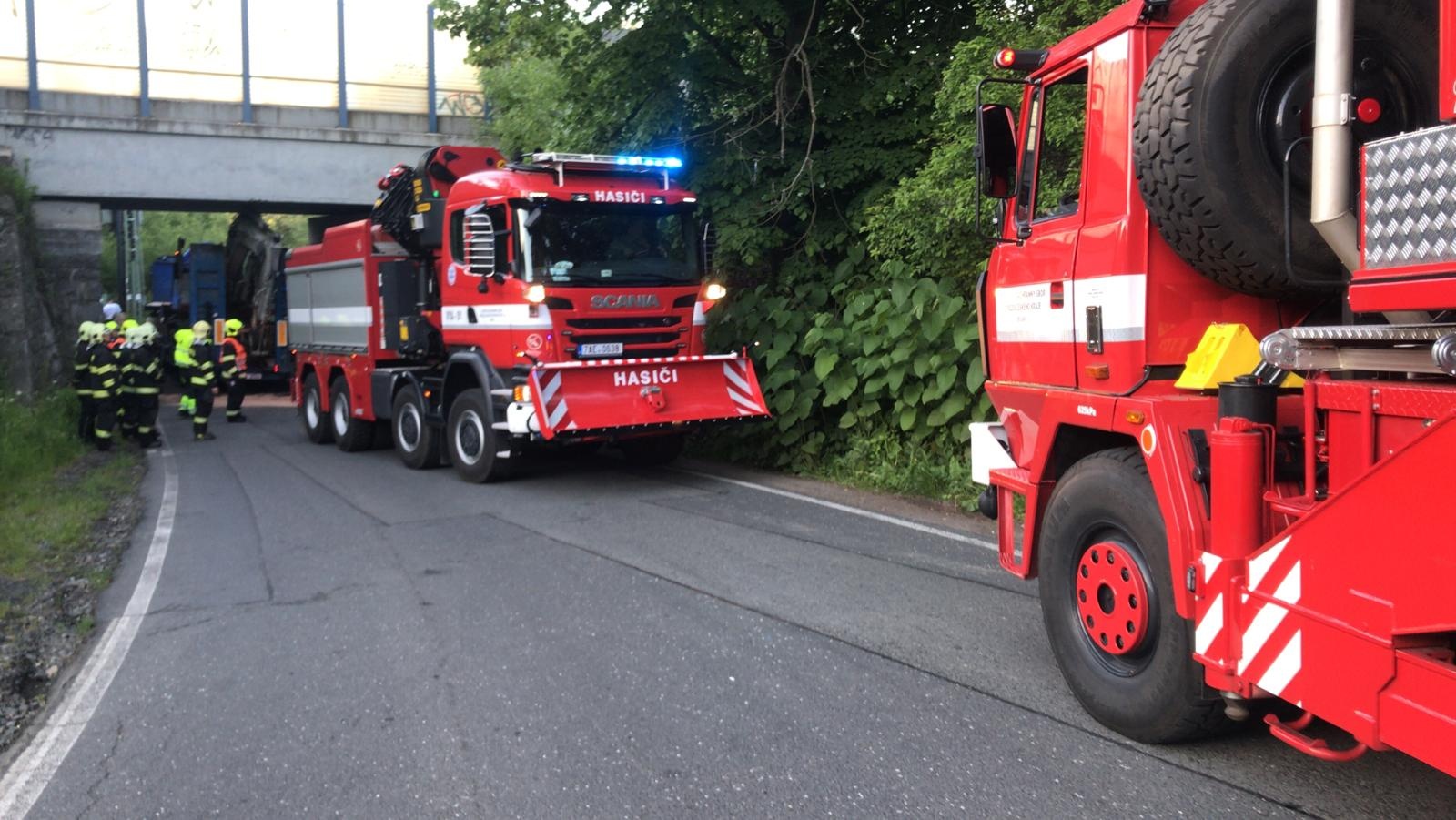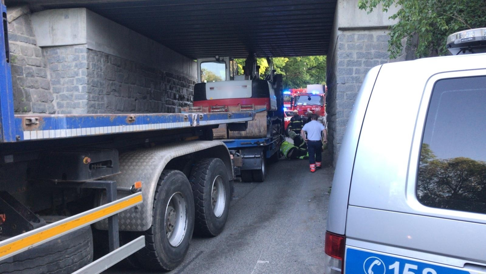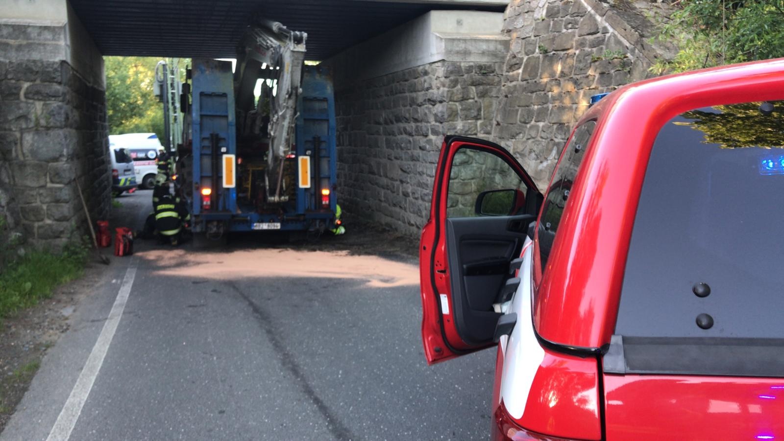 V pondělí 1. června krátce po 19. hodině byla na linku tísňového volání středočeských hasičů oznámena neobvyklá nehoda, při které nákladní vozidlo s vlekem uvízlo pod železničním mostem v katastru obce Všestary v okrese Praha-východ.
