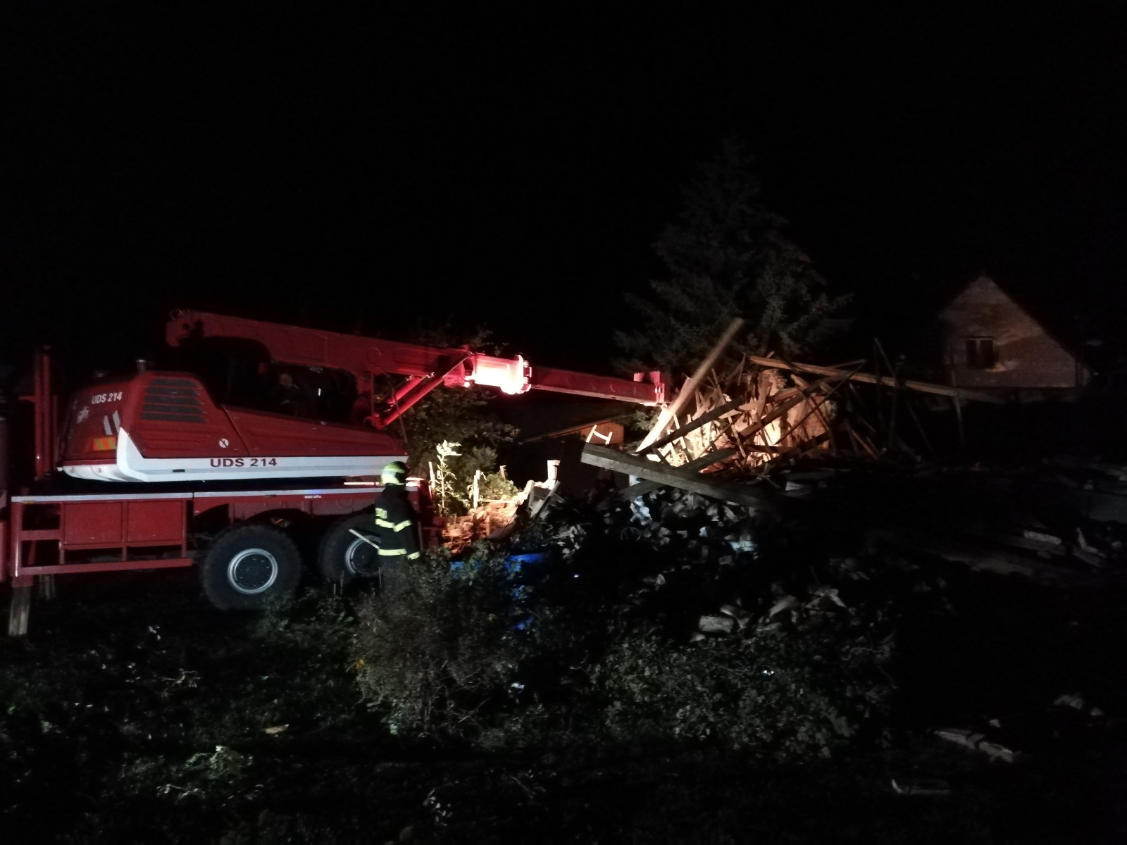 U dvou rodinných domů jednotky provedly zpevnění pomocí výdřevy a následné provizorní zastřešení. Pomocí stroje UDS-214 ze Zbirohu byl jeden objekt na základě rozhodnutí statika stržen a ta samá technika byla využita i na odstranění poškozeného betonového sloupu. U jednoho zborceného objektu bylo jednotkami částečně rozebráno obvodové zdivo, které hrozilo pádem. Do ranních hodin hasiči odklidili asi čtyřicet stromů padlých do silnic, železniční trati a elektrického vedení. Celkem bylo zkontrolováno šestnáct rodinných domů, které byly ohroženy vyvrácenými stromy nebo hrozilo narušení jejich statické stabilizace. Odstraňování následků v obou obcích bude pokračovat i v následujících dnech.