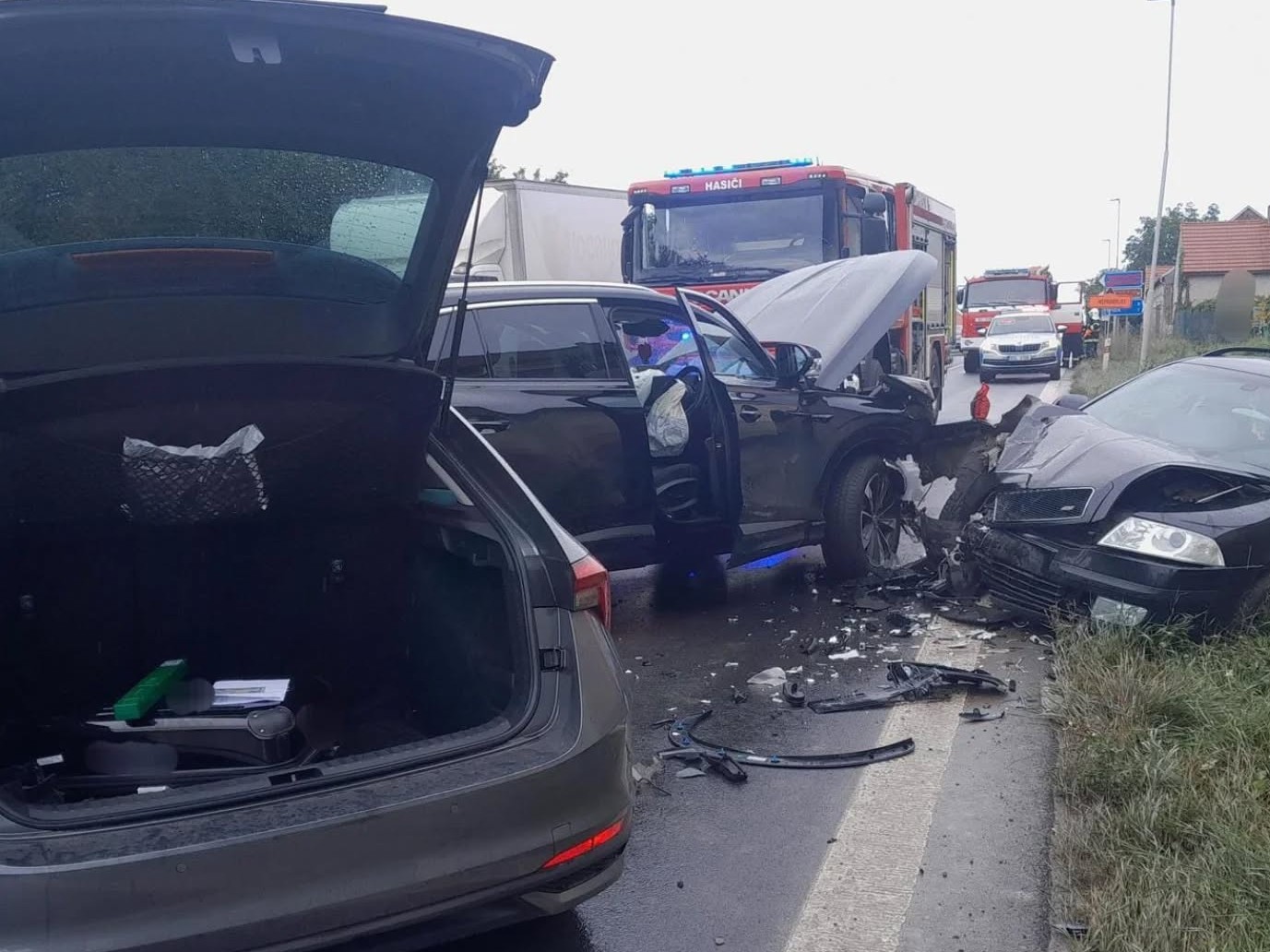 Odpolední špička 2. srpna se na hlavním tahu změnila v krizový scénář. Nedaleko Kutrovic došlo k nehodě tří osobních vozidel.