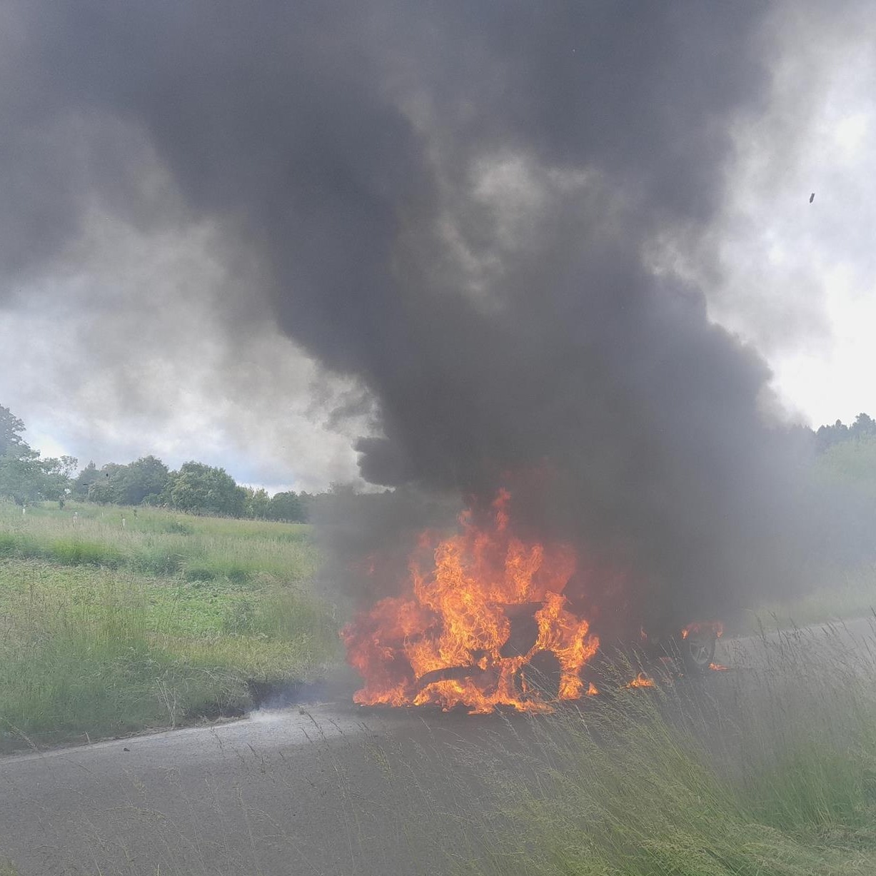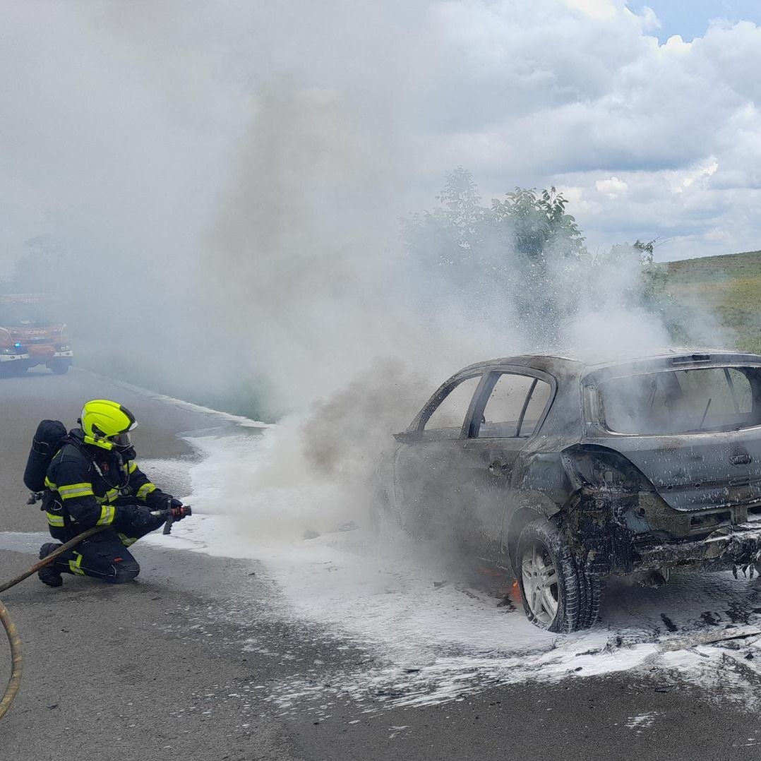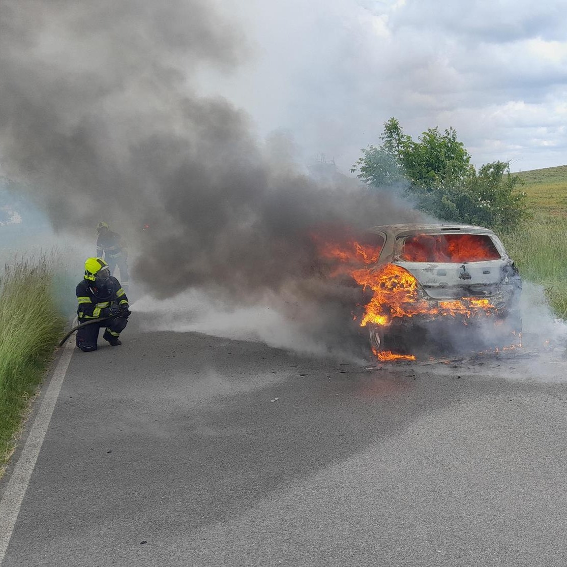 Jen o několik hodin později, ve 12:40, zaznamenali operační důstojníci další naléhavé hlášení – mezi obcemi Jedomělice a Pozdeň na Kladensku vzplál osobní automobil. K místu okamžitě vyrazili profesionální hasiči ze Slaného, dobrovolní hasiči z Plchova a vyšetřovatel požárů z Kladna.