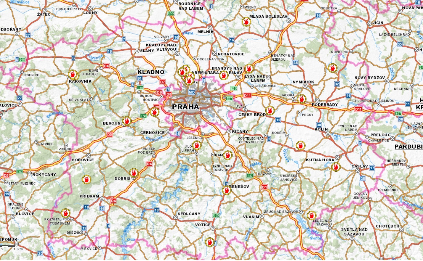 aké na Benešovsku u obce Třetužel hasiči bojovali s požárem lesa, který se rozrostl na plochu o rozloze 200x50 metrů. I zde byl vyhlášen druhý stupeň poplachu, protože bylo nutné povolat větší počet cisteren.