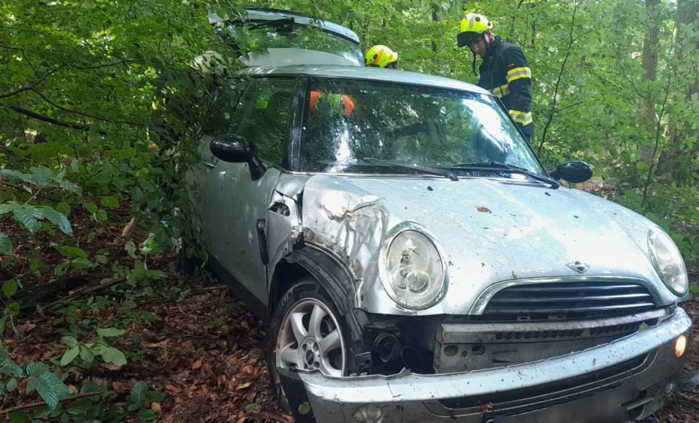 Nehoda bez střetu, ale s následky. Hasiči pomáhali zraněnému muži v havarovaném autě