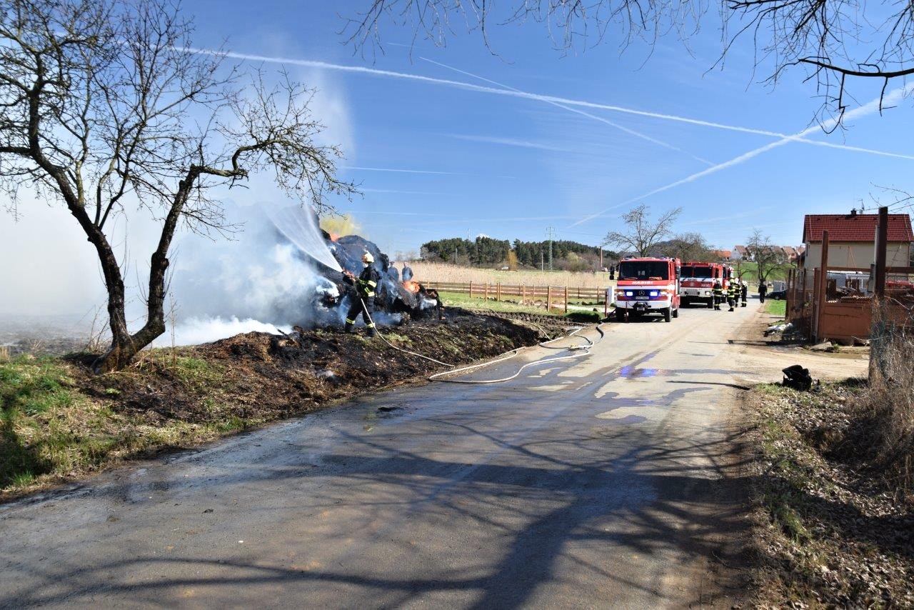 Na místo se dostavil také majitel, který zajistil čelní nakladač na rozhrabování stohu, ve kterém bylo zasaženo kolem padesáti balíků slámy. Požár se podařilo lokalizovat ve velmi krátkém čase asi patnácti minut, ale další likvidace plamenů byla vzhledem k rozsahu požáru neefektivní. Po dohodě s majitelem se proto nechal zbytek stohu kontrolovaně vyhořet a veškerá činnost směřovala k ochraně okolí.