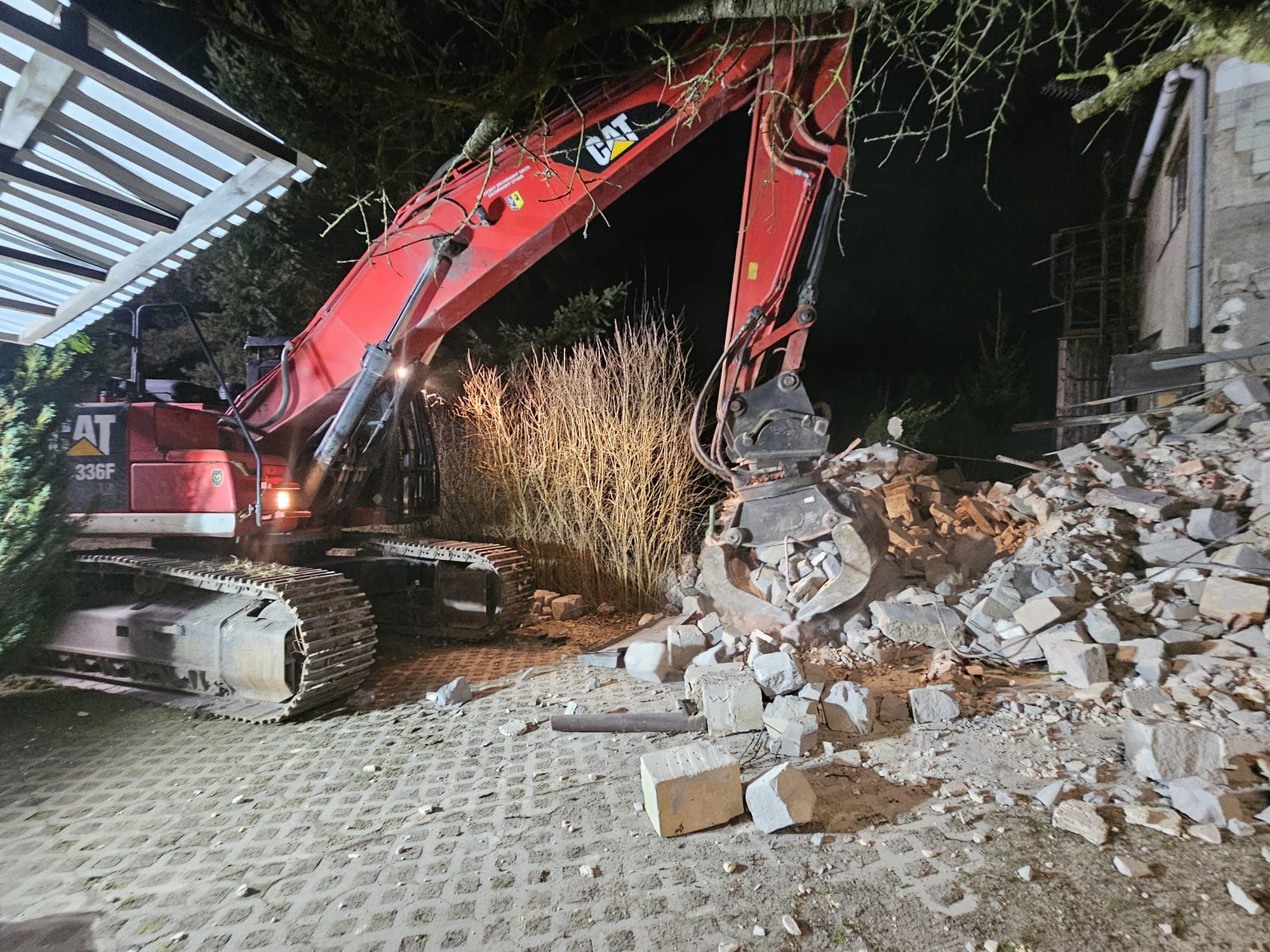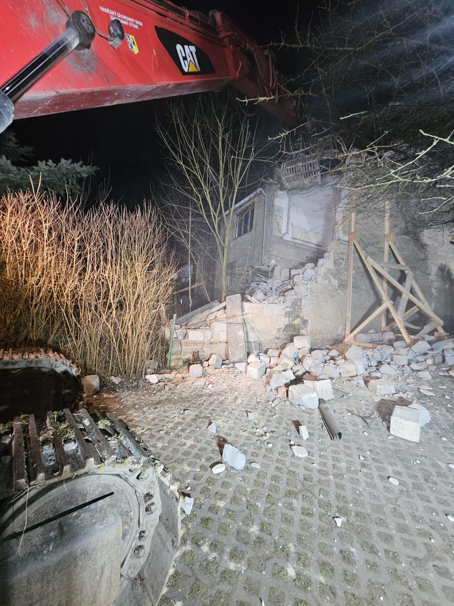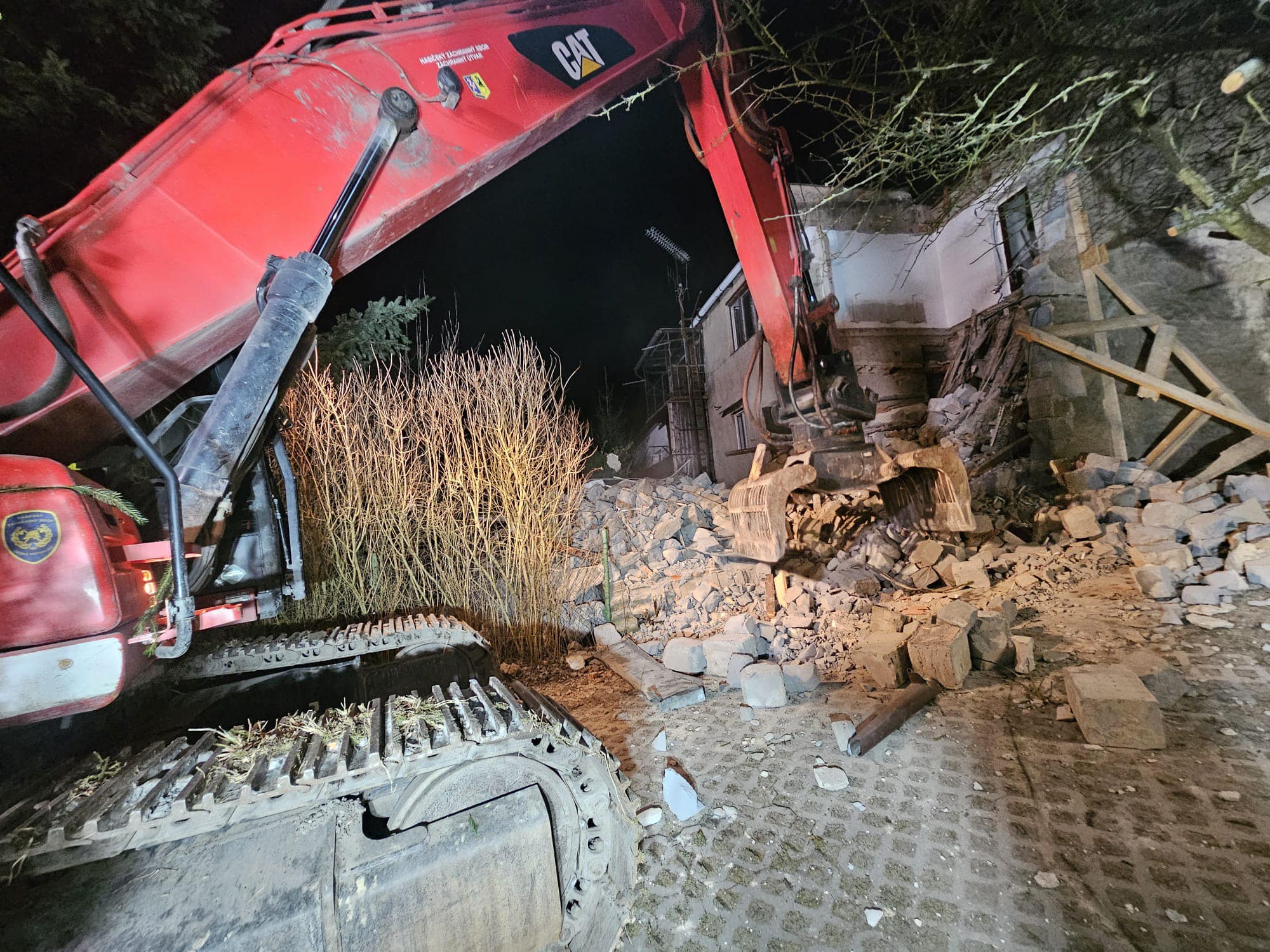 Na místo dorazil statik, který rozhodl, že přistavěná část domu je nestabilní a musí být okamžitě zdemolována. K provedení demolice bylo povoláno pásové rypadlo ze @zuhzscr, které zahájilo bourací práce.