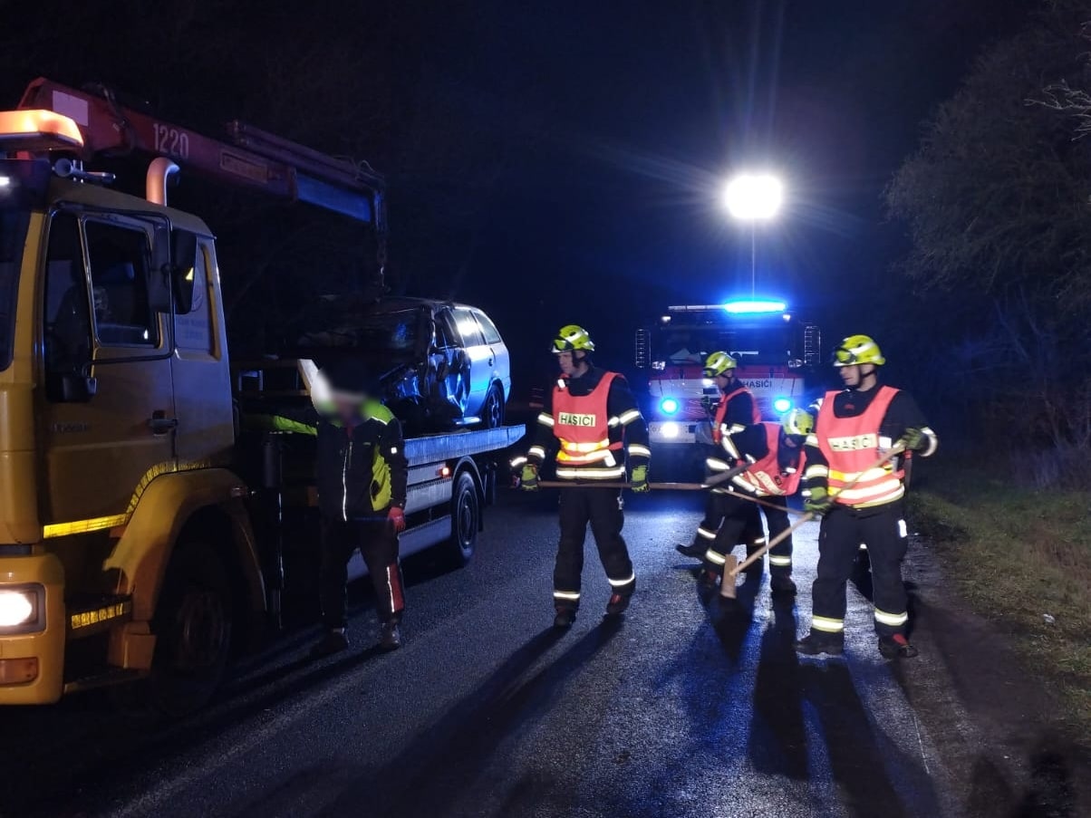 Dvě osobní auta se čelně střetla na silnici č. 250 u Staňkovic na Žatecku. Jedno vozidlo zůstalo převrácené na střeše a tři lidé byli mimo vozy ještě před příjezdem hasičů. Dva z nich převzala Zdravotnická záchranná služba. Zásah tří jednotek IZS uzavřel komunikaci na nezbytnou dobu a opět připomněl význam preventivní opatrnosti v provozu.