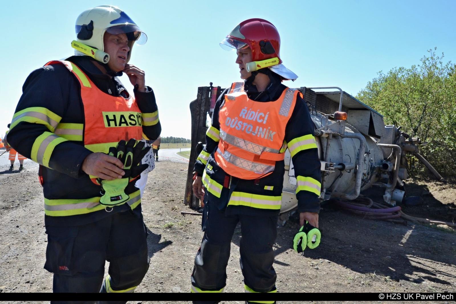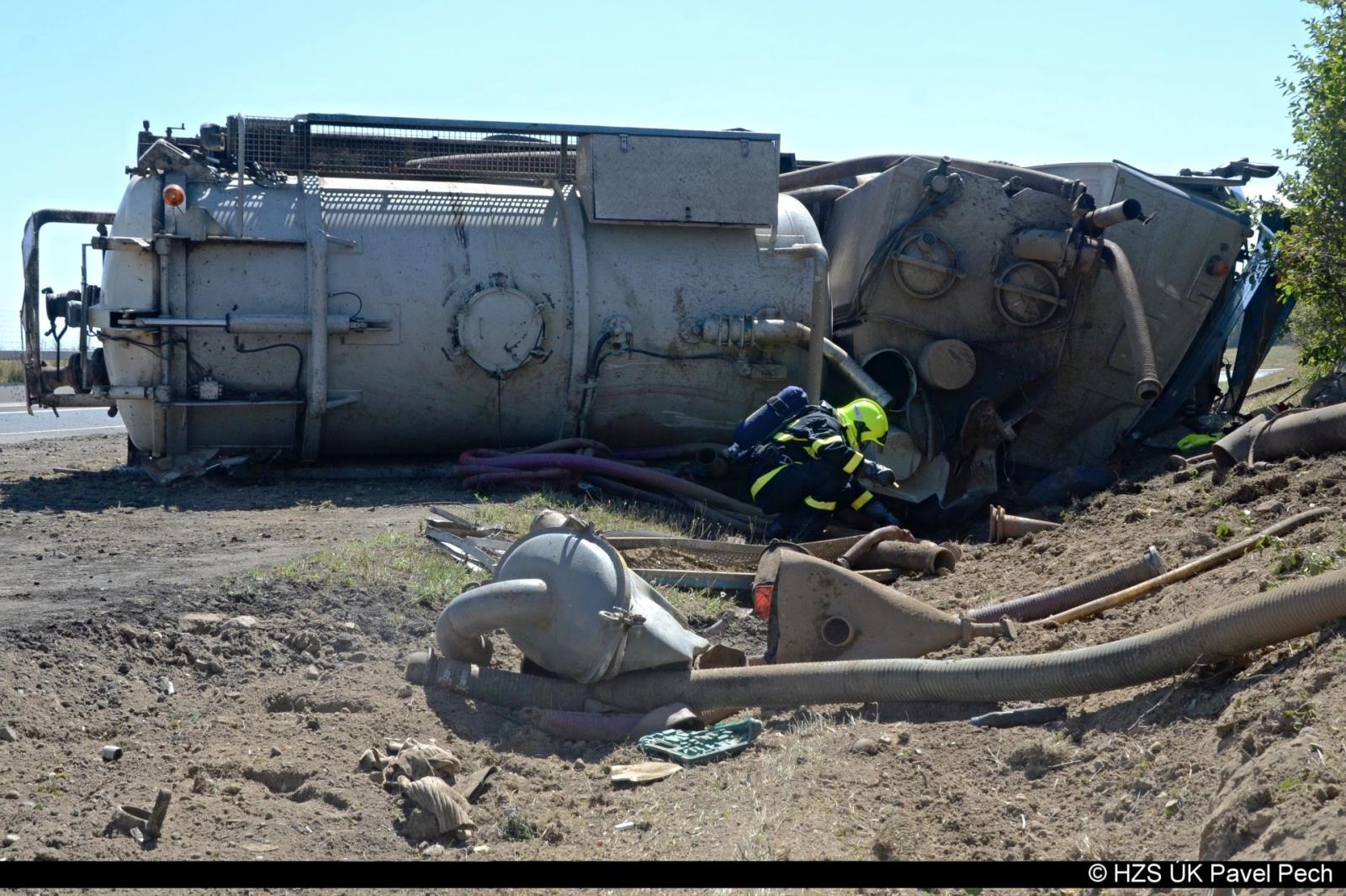 V pondělí 6. 8. 2018 v 10:57 hodin vyjely tři hasičské jednotky  k dopravní nehodě cisterny na D8 u obce Kleneč.