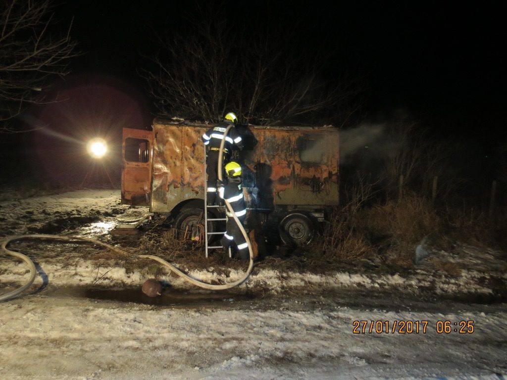 Dnes od půlnoci hasiči zasahovali u požáru maringotky i u dopravní nehody.