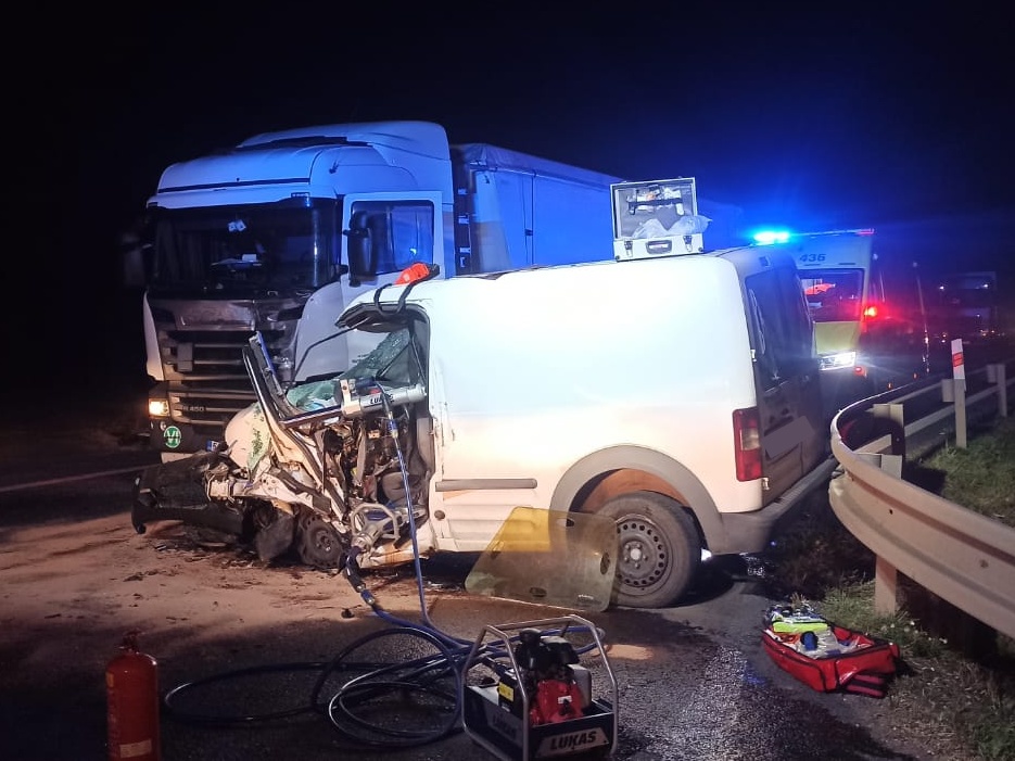8. 10. 2021 5:36 Jednotka ze stanice Podbořany a dobrovolná jednotka z Lubence vyjely k dopravní nehodě dodávky a kamionu u obce Blatno, okres Louny. Hasiči z havarovaného vozu vyprostili zraněného člověka a předali jej Zdravotnické záchranné službě. Silnice byla po dobu zásahu neprůjezdná.