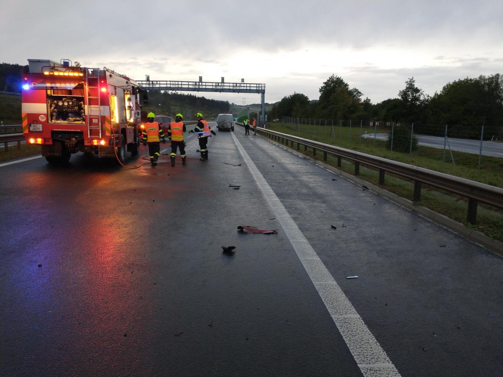 Hasiči ze stanice Podbořany a dobrovolní hasiči obce Lubenec likvidovali následky dopravní nehody na dálnici D6 u Lubence, kde došlo...