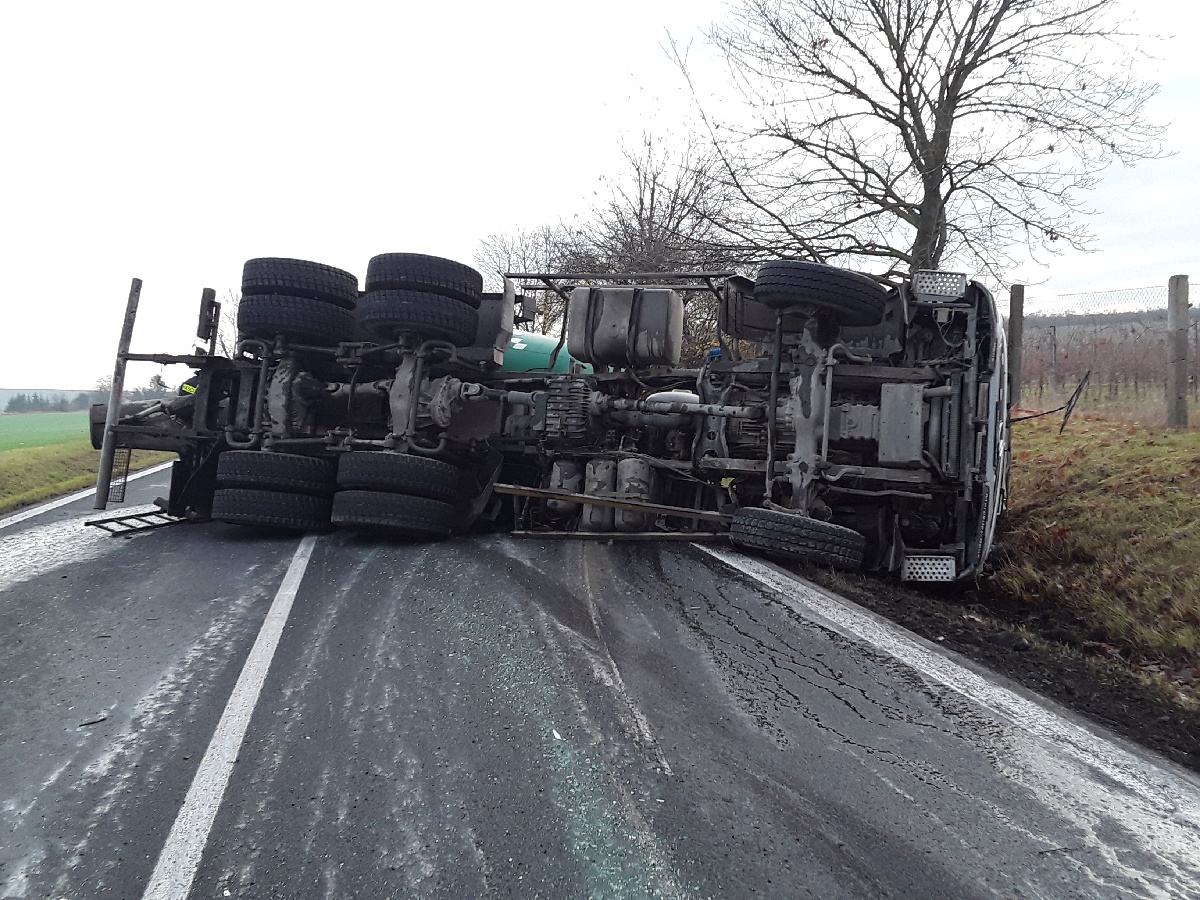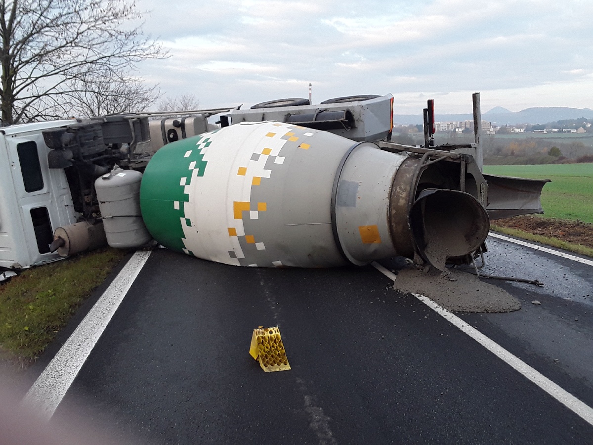 6. 11. 2021 v 7:38 hodin. Hasiči ze stanice Litoměřice zasahují u dopravní nehody domíchávače betonu na silnici č. 1/15 u obce Trnovany na Litoměřicku. Komunikace bylo po celou dobu zásahu uzavřena v obou směrech v řádu hodin. Z vozidla unikali provozní náplně a beton.