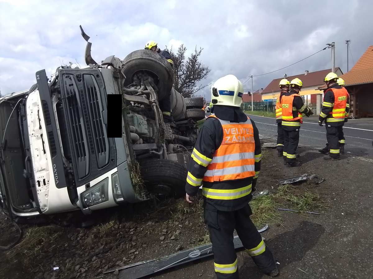 Dopravní nehoda dvou nákladních automobilů v Želkovicích