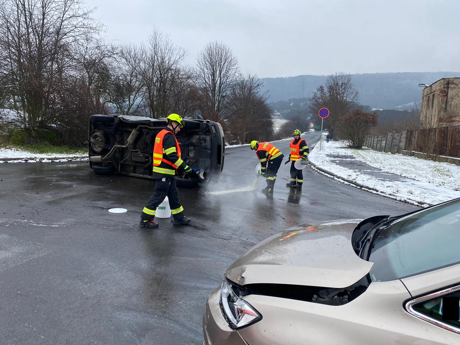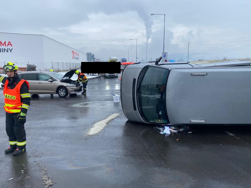 18. 1. 2023 12:00 Jednotka ze stanice Ústí nad Labem vyjela k dopravní nehodě dvou osobních aut v Jateční ulici v Ústí nad Labem. Jedno z aut se převrátilo na bok. Při nehodě byl jeden člověk zraněn. Hasiči mu poskytli předlékařskou pomoc a předali jej do péče Zdravotnické záchranné služby. Bylo provedeno protipožární opatření a asanace vozovky.
