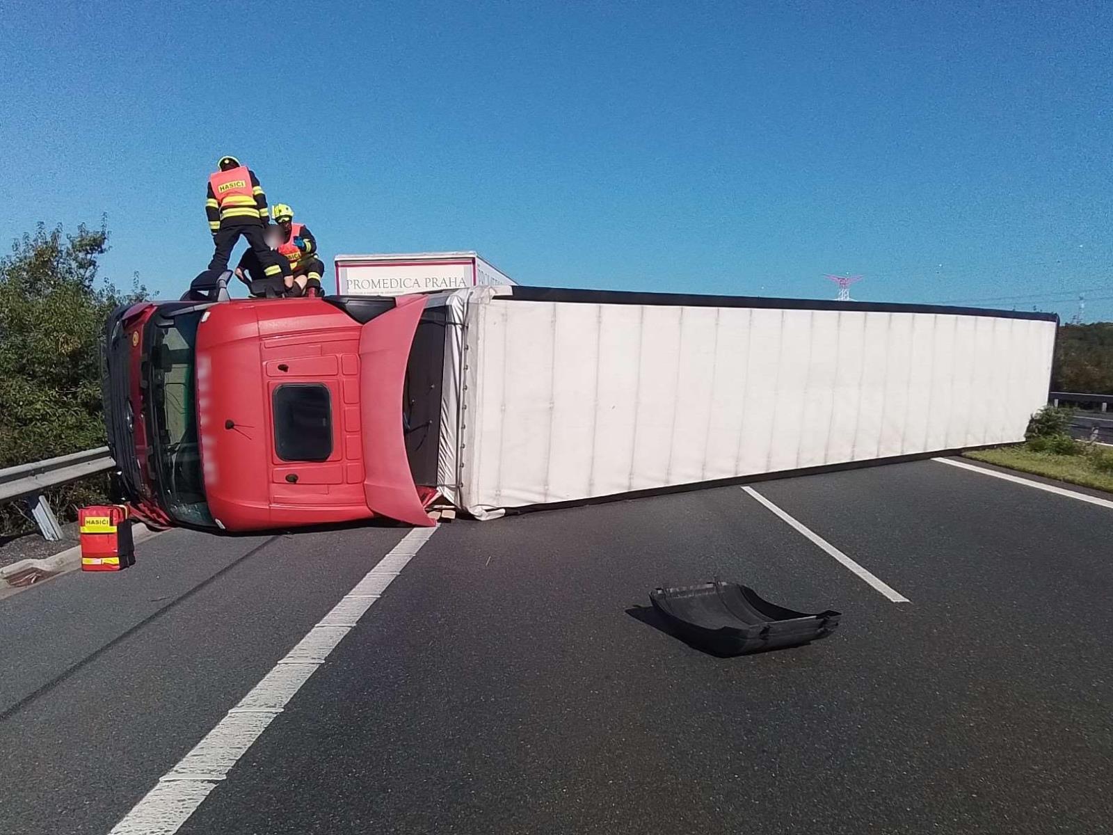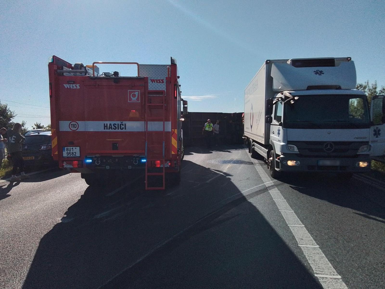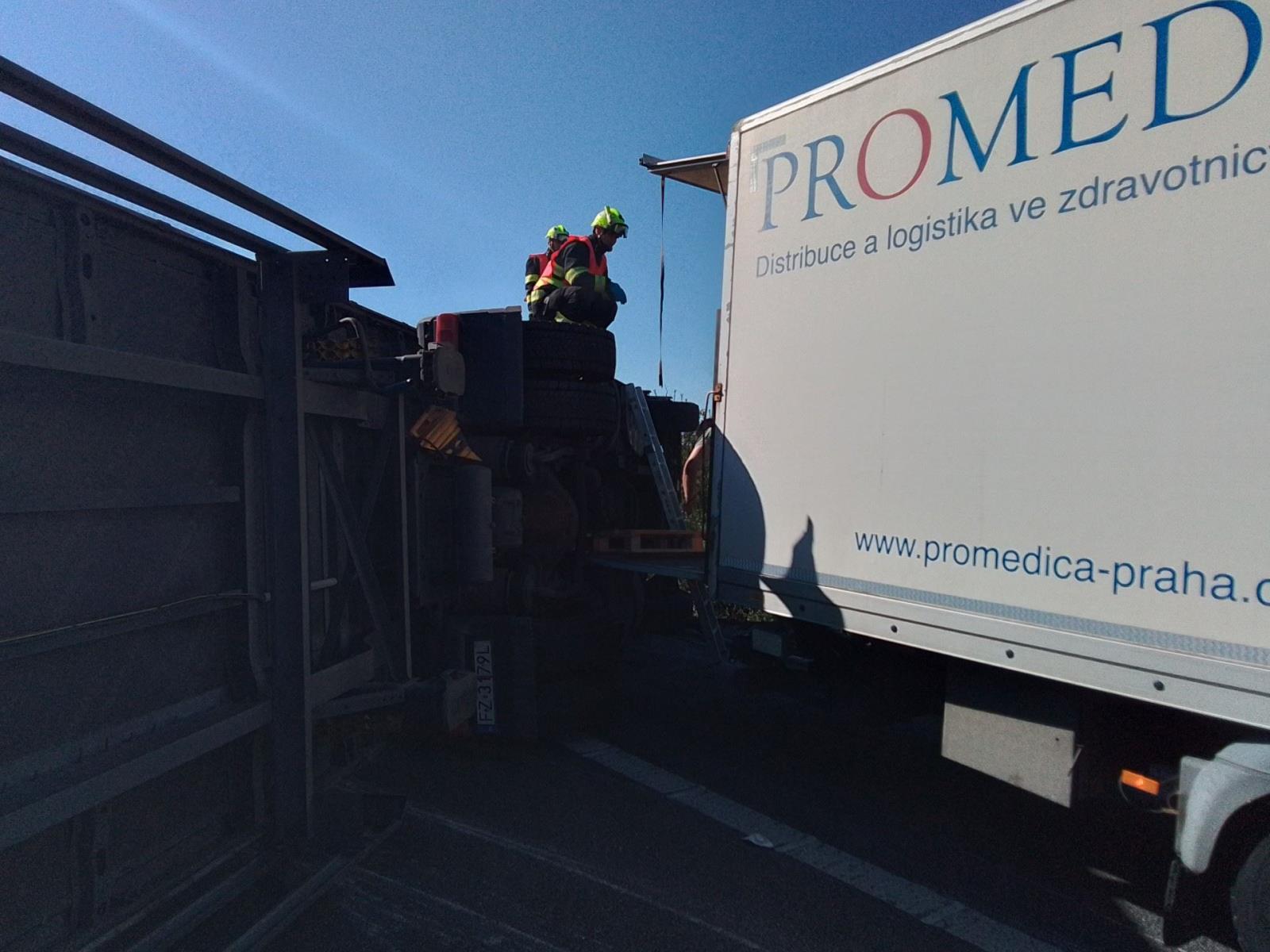 6. 8. 2024 v 9:09 hodin. Hasiči ze stanice Litoměřice, Lovosice a Roudnice nad Labem zasahovali na 43 kilometru dálnice D8 ve směru na Prahu u obce Keblice na Litoměřicku u převráceného kamionu vezoucího OSBD desky.