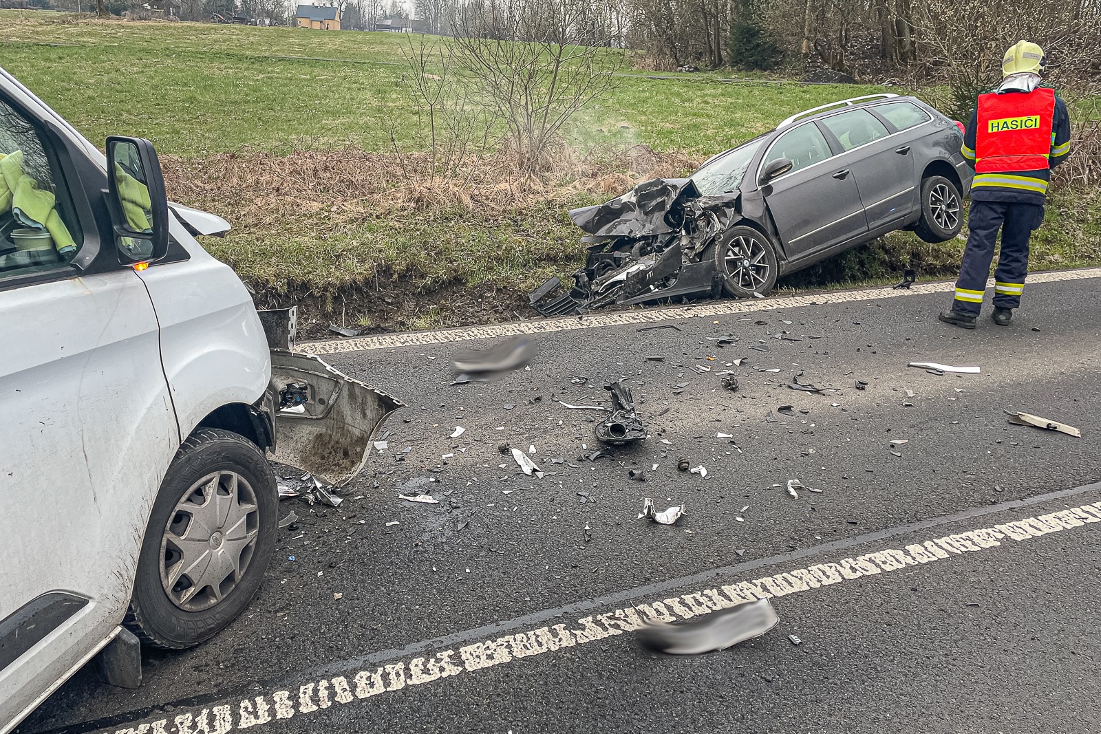 Dopravní nehoda osobního auta a dodávky v obci Studánka okres Děčín