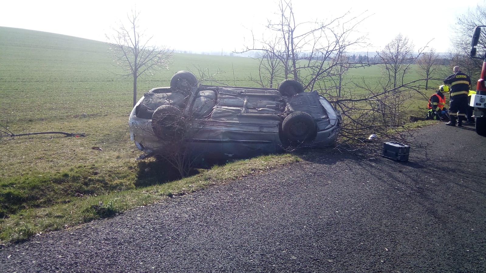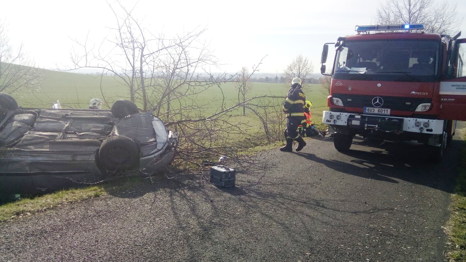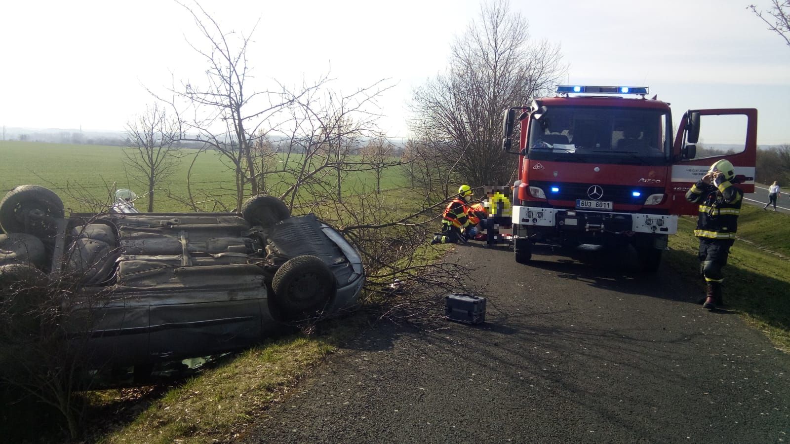 30. 3. 2021 9:58 Jednotka ze stanice Louny zasahovala u dopravní nehody osobního auta u Dobroměřic. Auto bylo převrácené na střechu. Jeden člověk byl zraněn. Hasiči jej ošetřili a předali Zdravotnické záchranné službě.