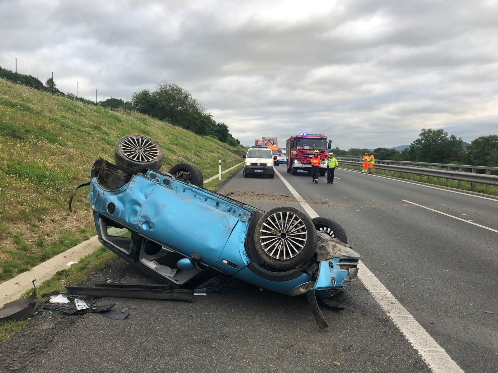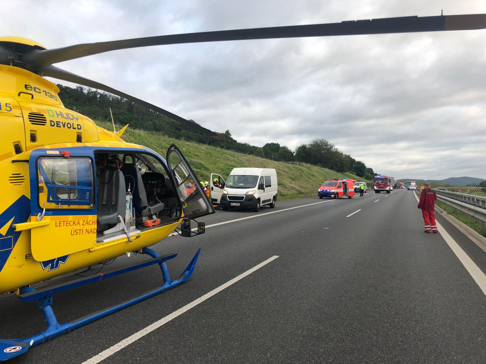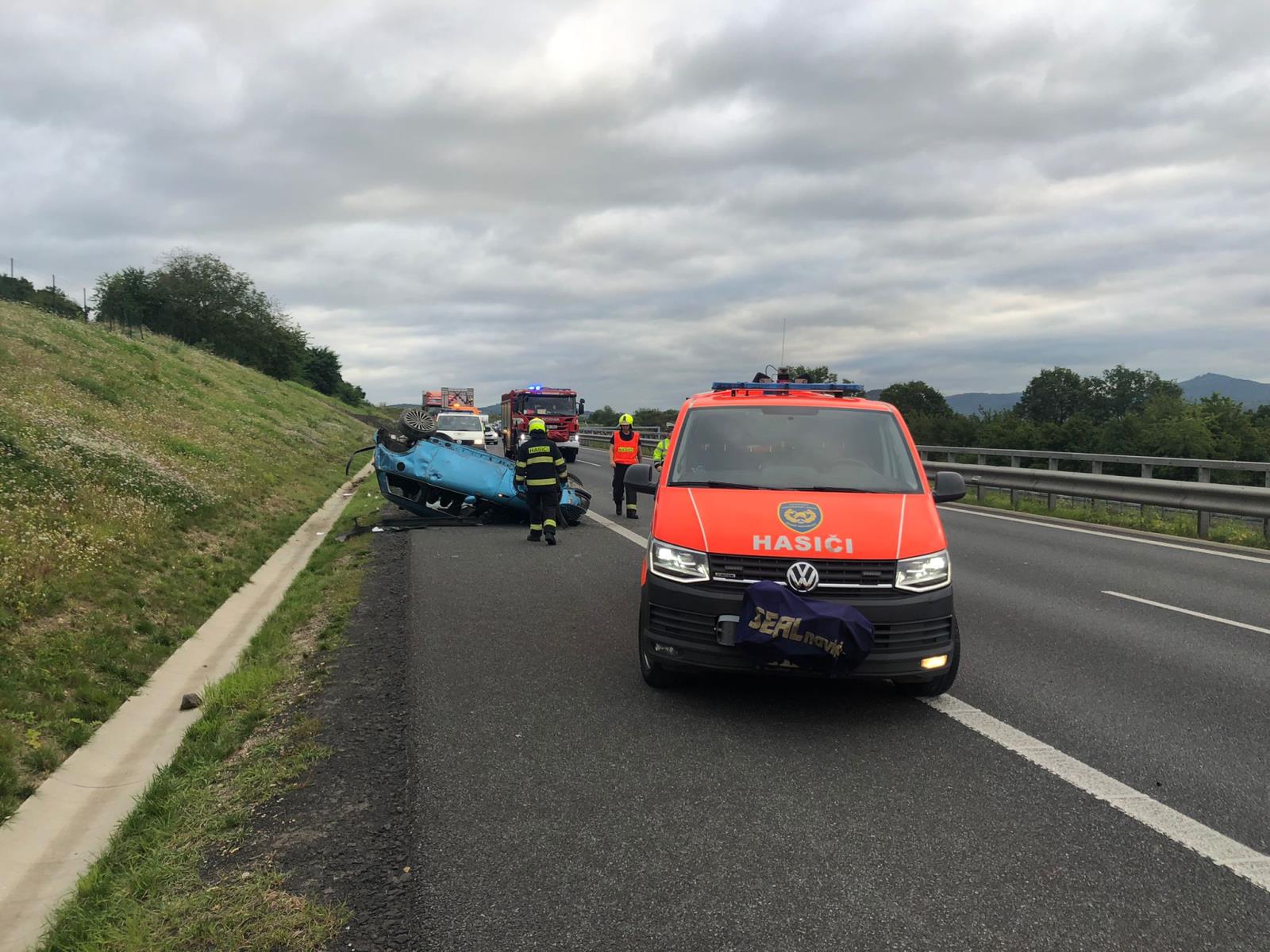 18. 8. 2021 v 7:06 hodin. Hasiči ze stanice Ústí nad Labem zasahovali u dopravní nehody na 56,5 km dálnice D8 směr Praha u obce Litochovice nad Labem na Litoměřicku. Při příjedu jednotky byly dvě zraněné osoby již mimo vozidlo.  Hasiči asistovali u ošetření a transportu osob do sanitky Zdravotnické záchranné služby a vrtulníku Letecké záchranné služby. Dále hasiči provedli na převráceném vozidle protipožární opatření,  zajistili vozidlo proti úniku provozních kapalin a úklid okolí nehody. Dálnice byla v průběhu zásahu neprůjezdná.